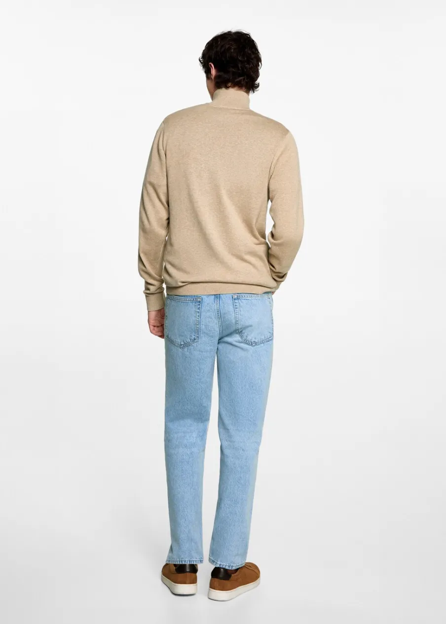 Zapięcie przy szyi. Długi rękaw. Model prosty. Model ma 180 cm wzrostu i nosi rozmiar M. Bawełna 100%. Półgolf.
