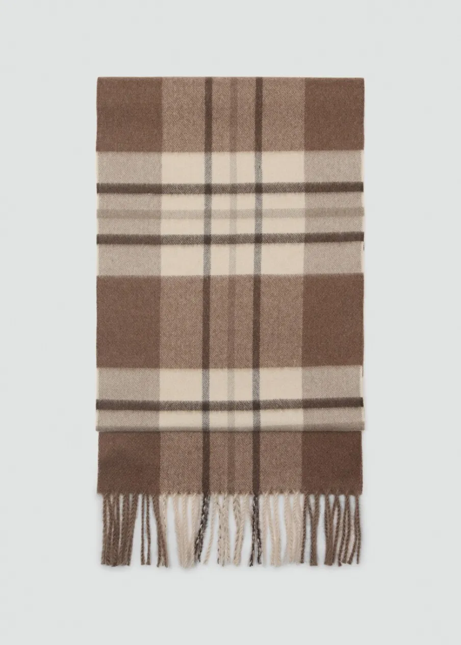 Materiały z recyklingu. Wzór w szkocką kratę. Frędzlowe wykończenie.