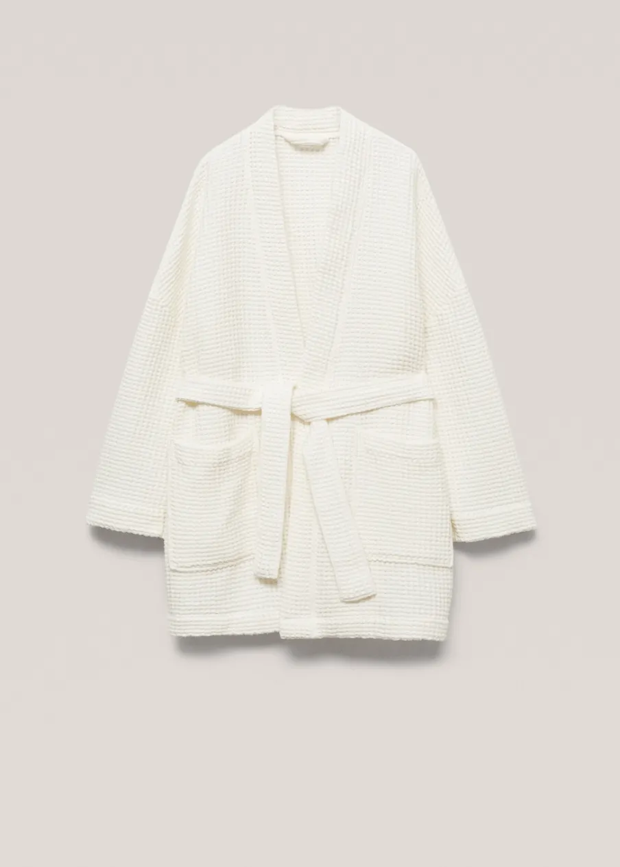 Bawełna 100%. Gofrowa tekstura. Wysoka jakość. Gramatura: 460 g/m2. Przyjemna tekstura. Dwie kieszenie nakładane z przodu. Wiązanie na wysokości biodra. Wysoce chłonny i oddychający materiał zapewnia szybkie schnięcie.