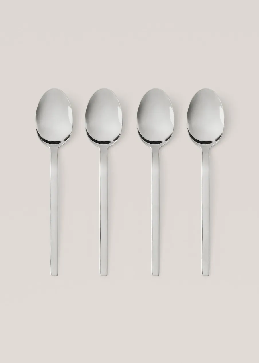 Sztućce. 100% stal nierdzewna. Model standardowy. Przybory kuchenne. Nie nadaje się do kuchenki mikrofalowej. Można myć w zmywarce. Skompletuj look za pomocą innych produktów z kolekcji. Zestaw 4 sztuk.