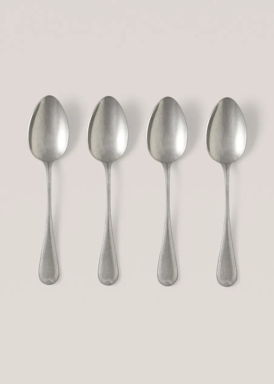 OpisSztućce. 100% stal nierdzewna. Imitacja postarzanego srebra. Przybory kuchenne. Zestaw 4 sztuk. Sztuciec.