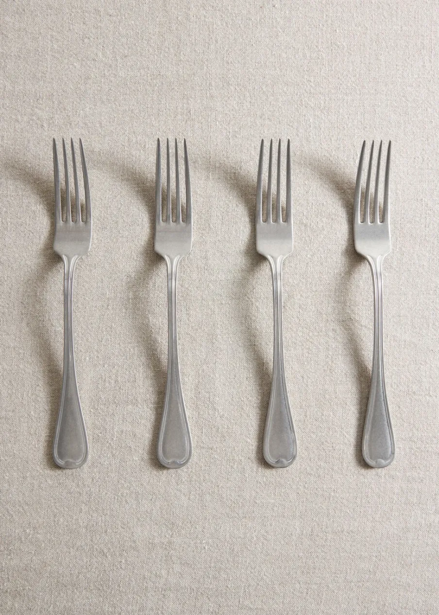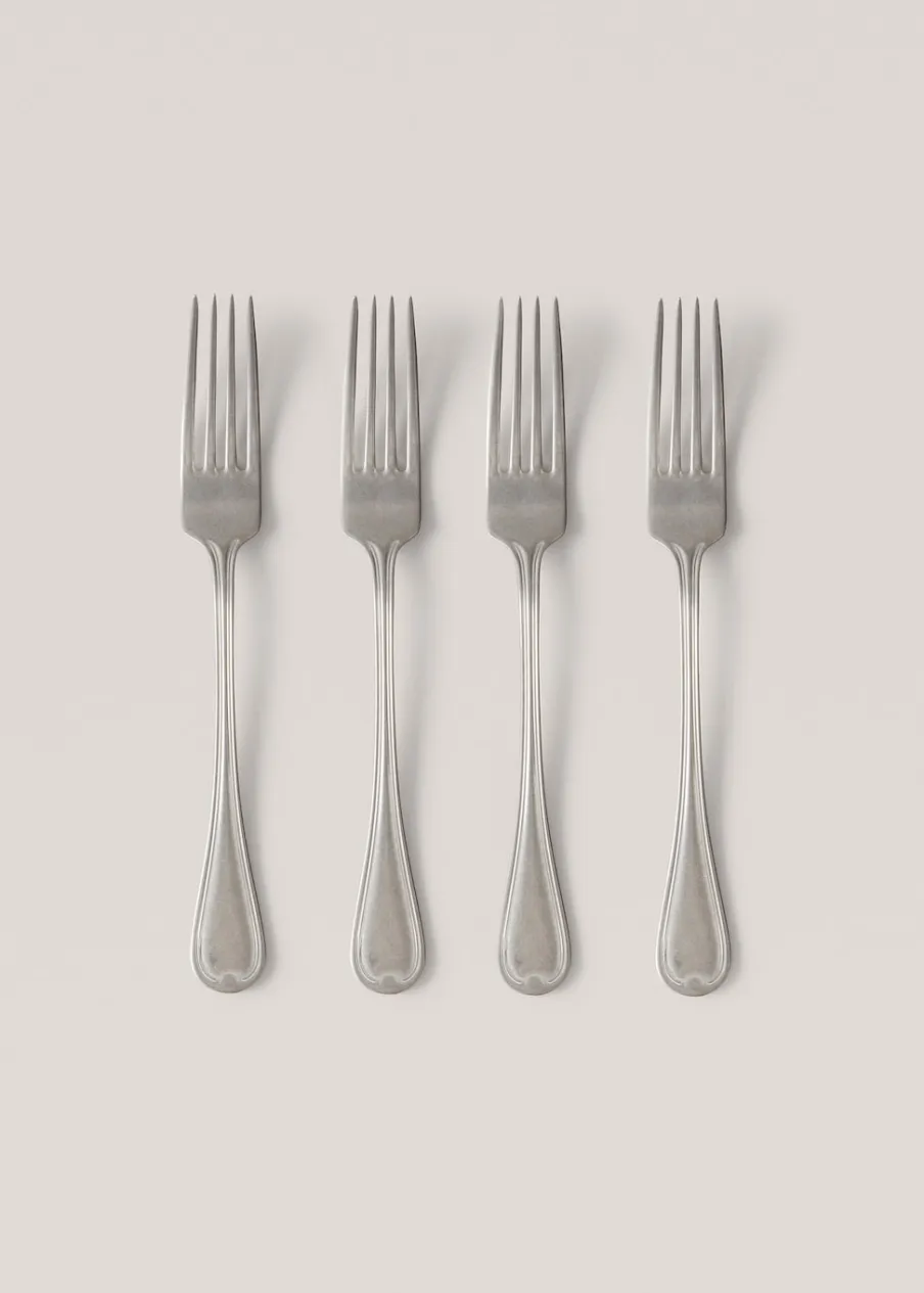 OpisSztućce. 100% stal nierdzewna. Imitacja postarzanego srebra. Przybory kuchenne. Zestaw 4 sztuk. Sztuciec.