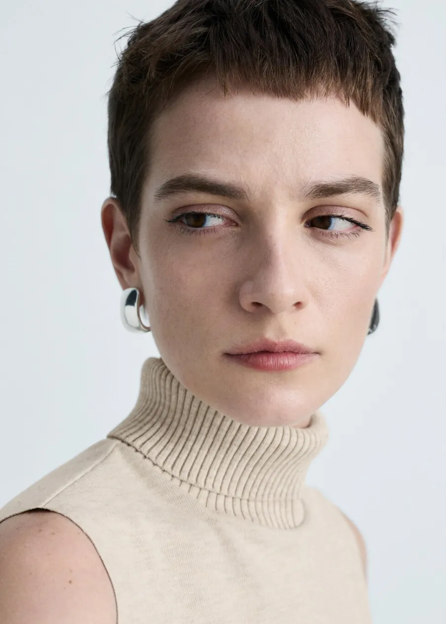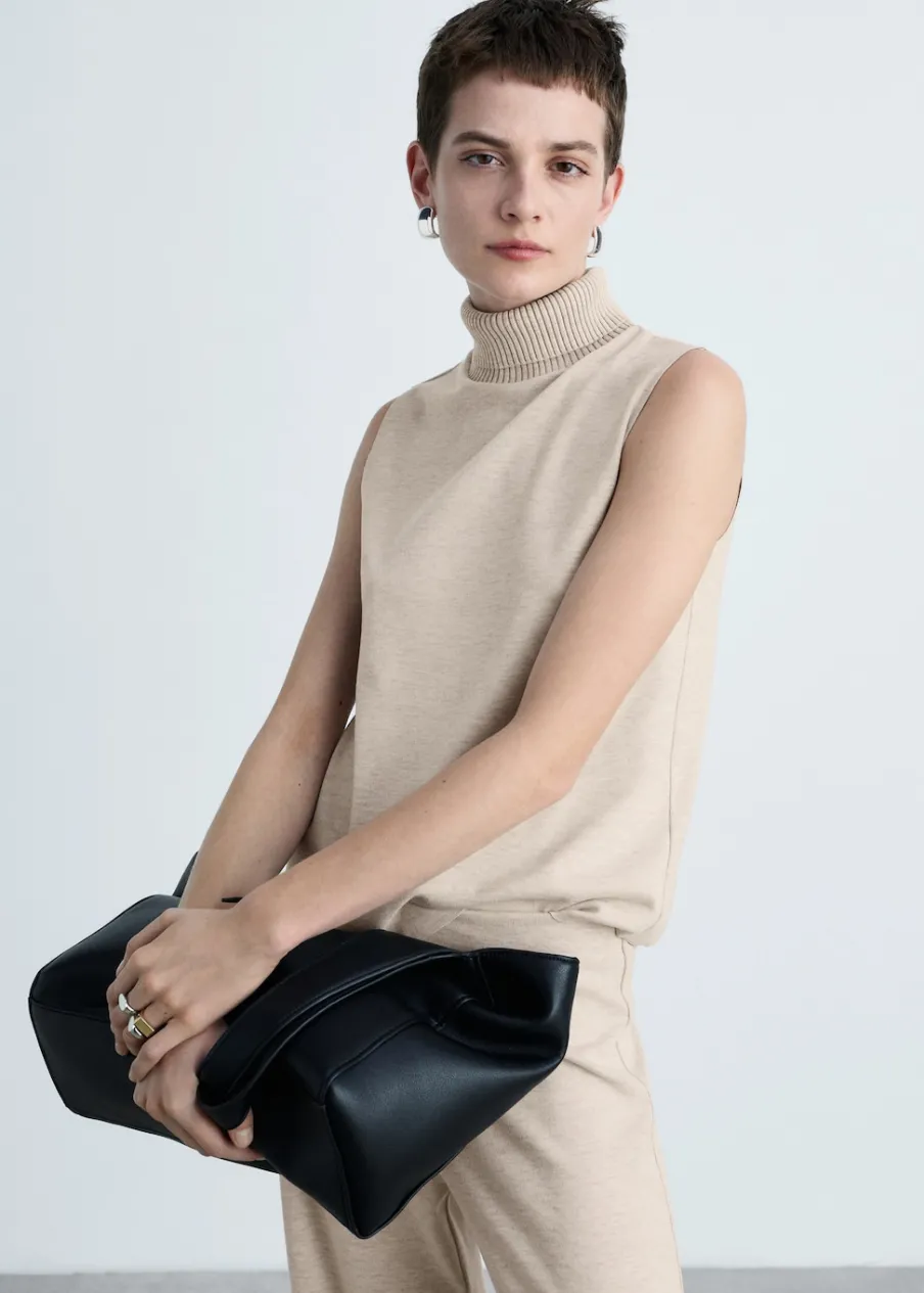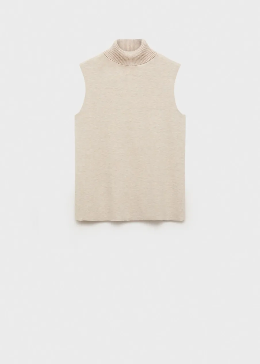 Dzianina. Cienka tkanina. Model prosty. Model standardowy. Golf. Bez rękawów. Bez zapięcia.