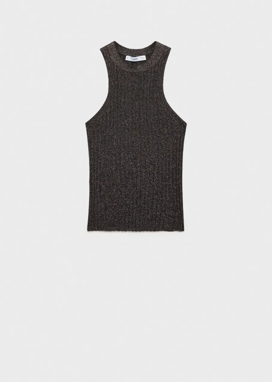 OpisTkanina z cienkiej dzianiny. Tkanina lureks. Model wcięty. Dekolt w stylu halter. Bez rękawów. Bez zapięcia. Mod…