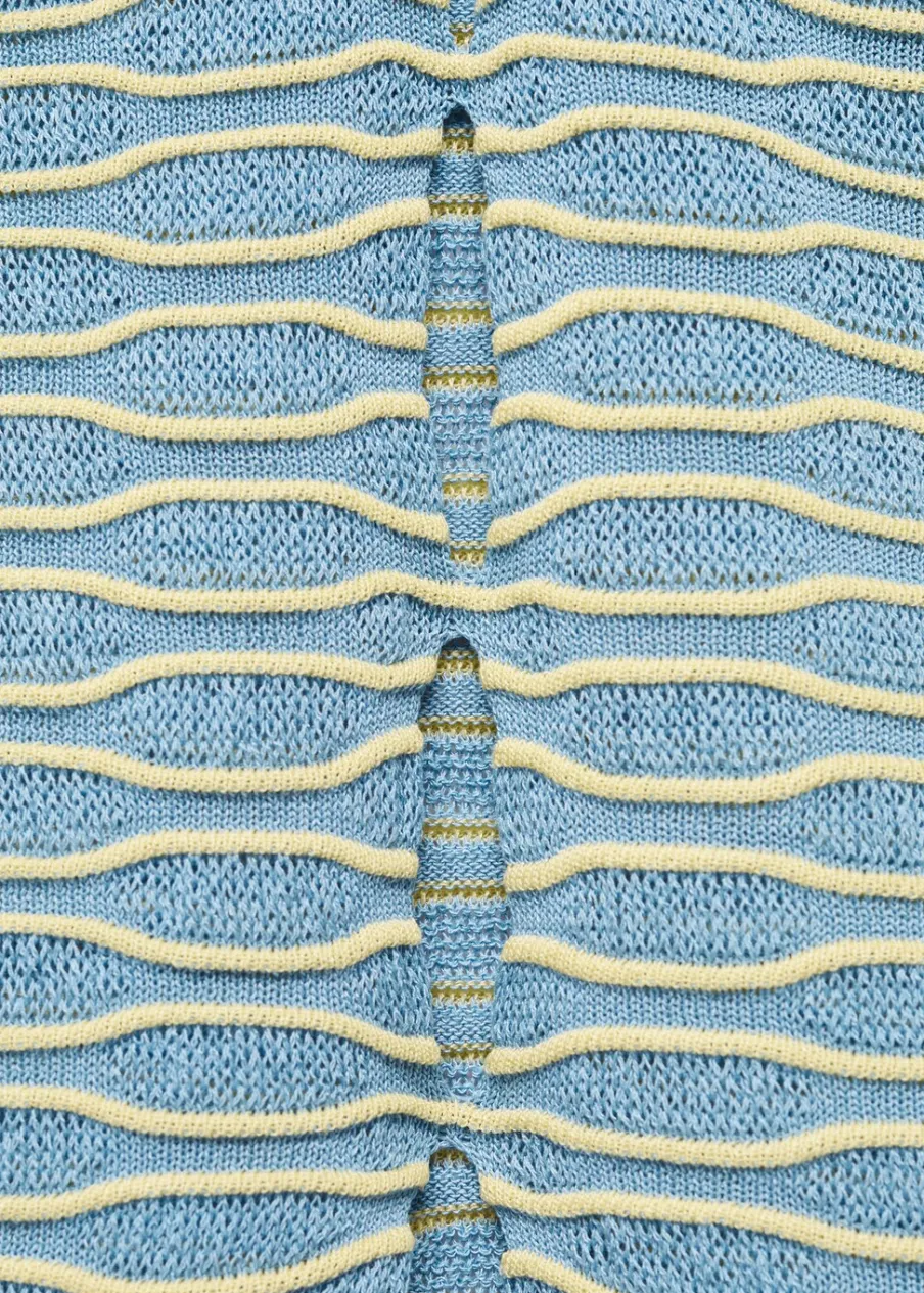 OpisTkanina z cienkiej dzianiny. Teksturowana tkanina. Deseń crop. Dekolt w stylu halter. Bez rękawów. Cienkie ramią…