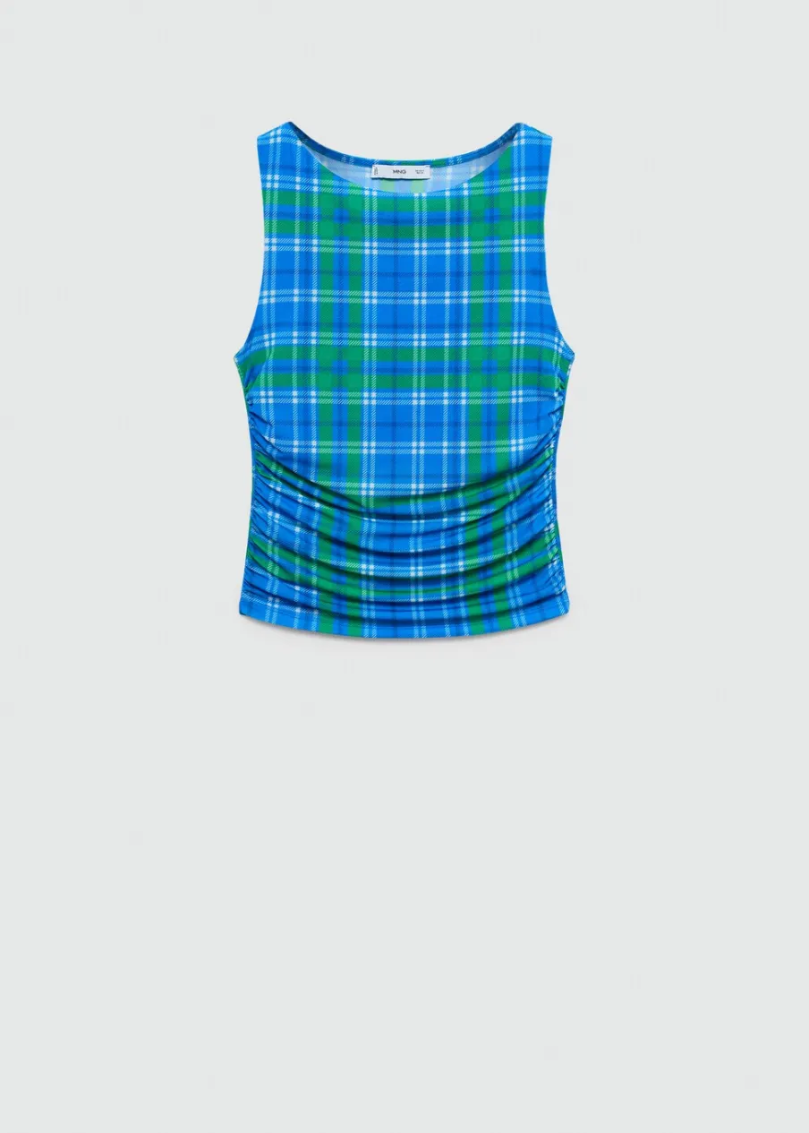 OpisElastyczna tkanina. Deseń crop. Wzór w kratę. Okrągły dekolt. Bez rękawów. Drapowane detale. Sezon festiwalow…