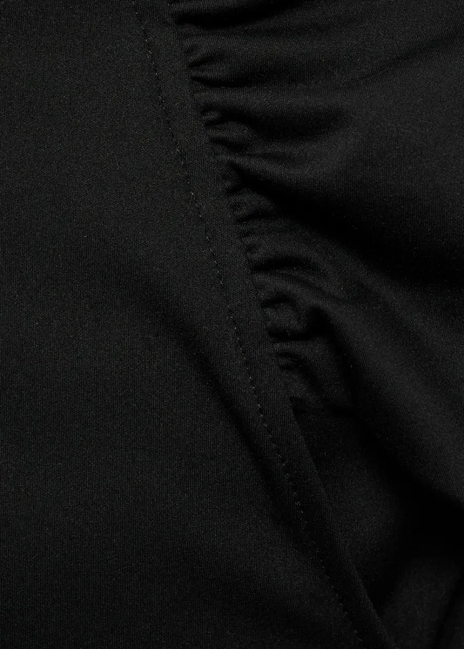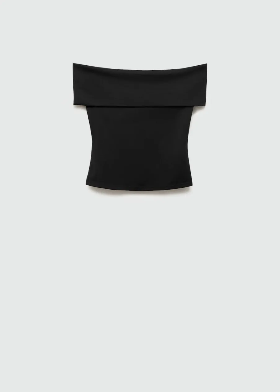 Elastyczna tkanina. Deseń crop. Fason z odkrytymi ramionami. Dekolt w kształcie łódki. Krótki rękaw. Odkryte ramiona. Bez zapięcia. Model wcięty.