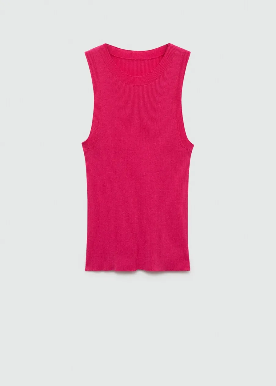 Tkanina z cienkiej dzianiny. Tkanina ze ściągaczowej dzianiny. Okrągły dekolt. Szerokie ramiączka. Bez zapięcia. Dostępne w Plus Size. Stylizacje biurowe. Model wcięty.