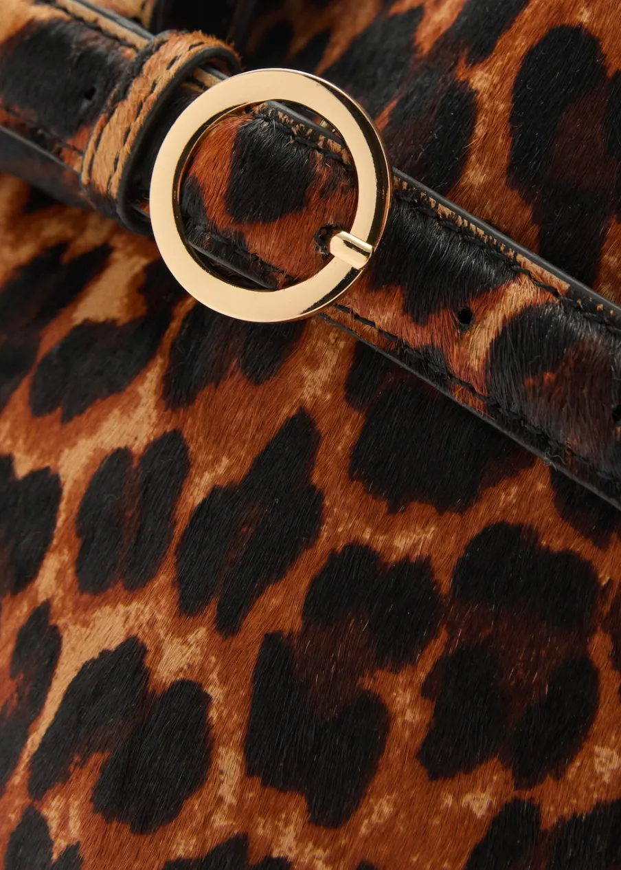 100% skóra bydlęca. Średnia wielkość. W stylu shopper. Pasek na ramię. Wzór w lamparcie cętki. Zwierzęcy wzór. Wewnętrzna kieszeń. Zapięcie na suwak. Ukryte zapięcie na magnes. Wewnętrzna podszewka.
