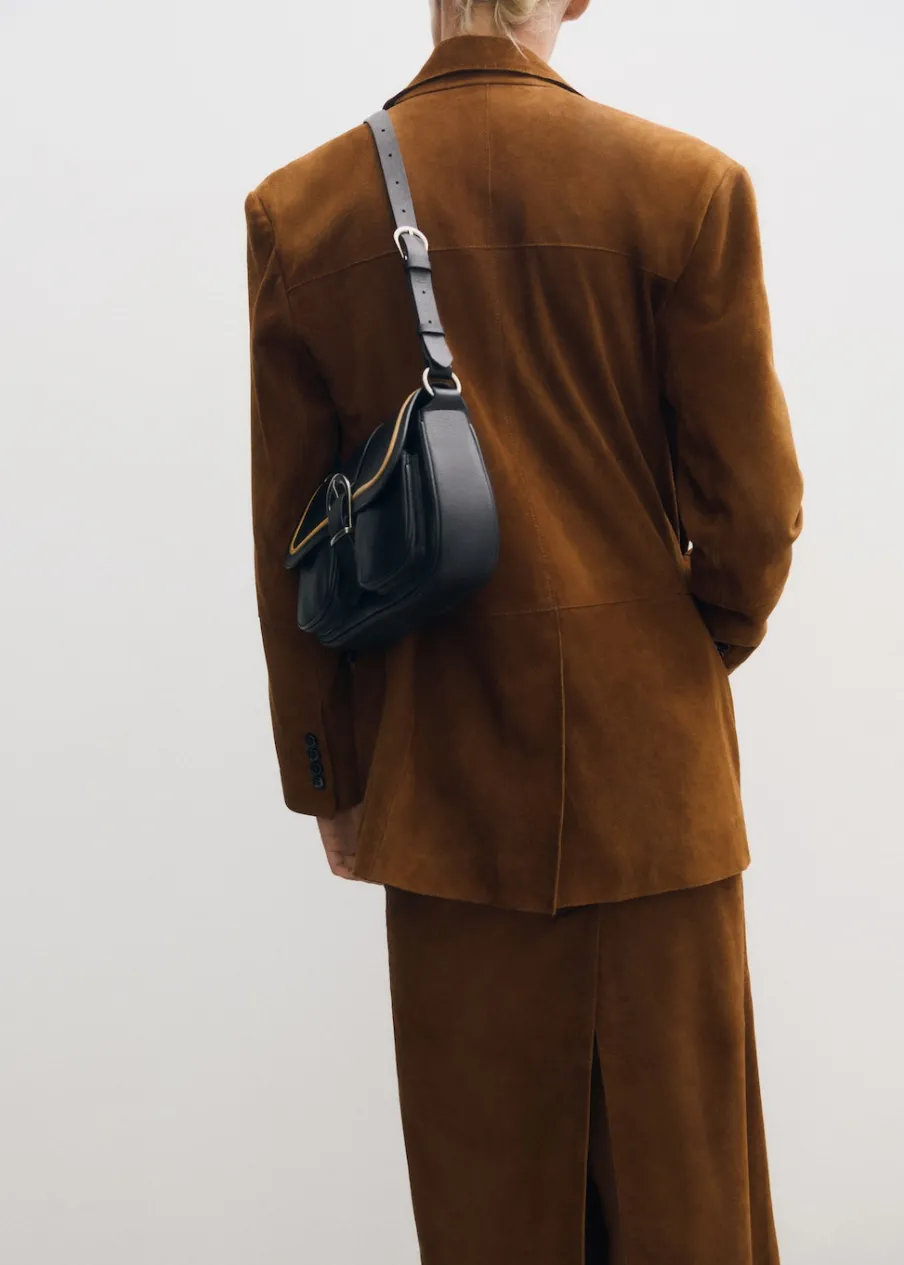 100% skóra bydlęca. Średnia wielkość. Pasek na ramię. Regulowany uchwyt. Kieszenie cargo. Zapięcie na klamrę. Zapięcie na suwak. Kontrastowy detal. Wewnętrzna podszewka.