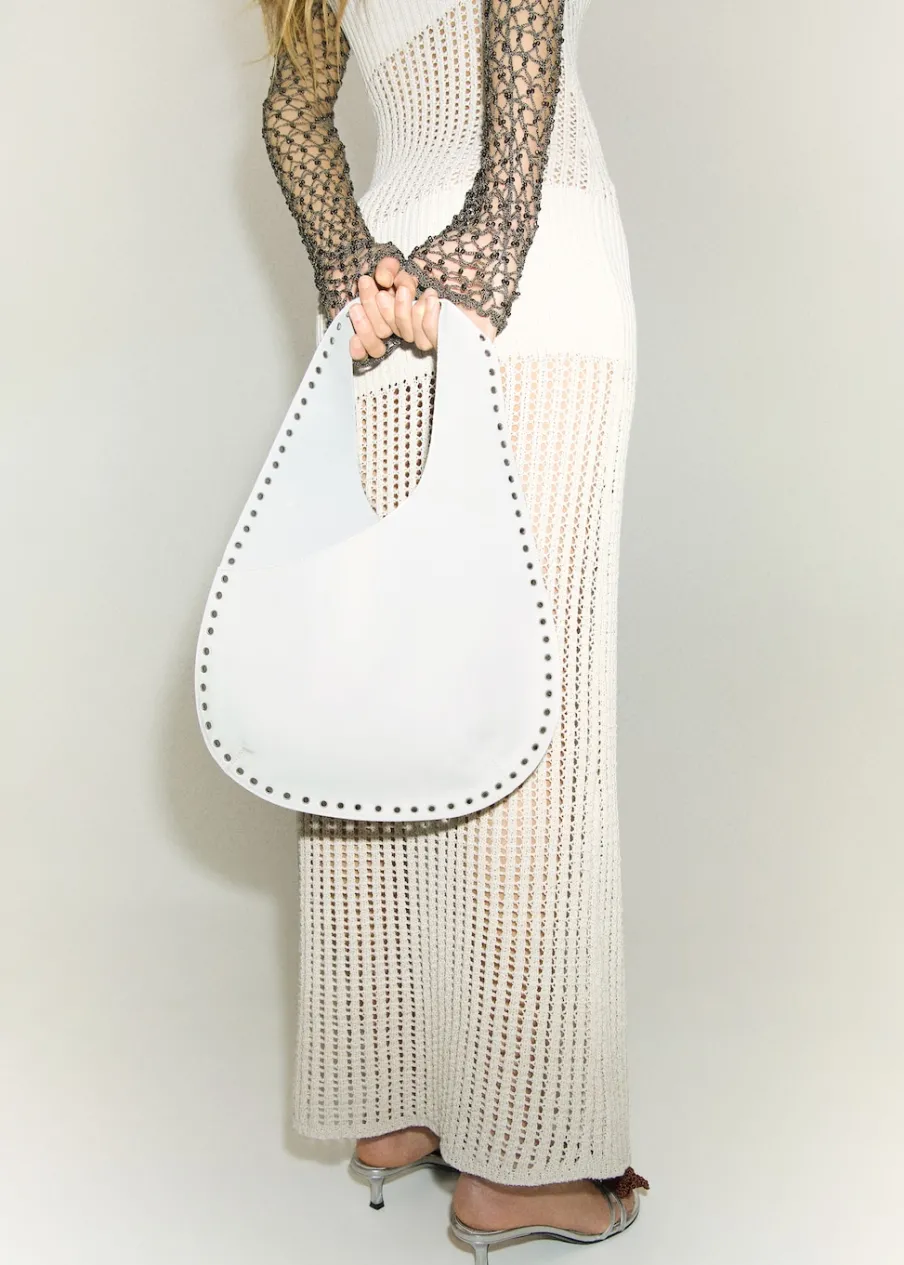 100% skóra bydlęca. Średnia wielkość. Pasek na ramię. Bez zapięcia. Ozdobna kieszeń. Ozdobne ćwieki.