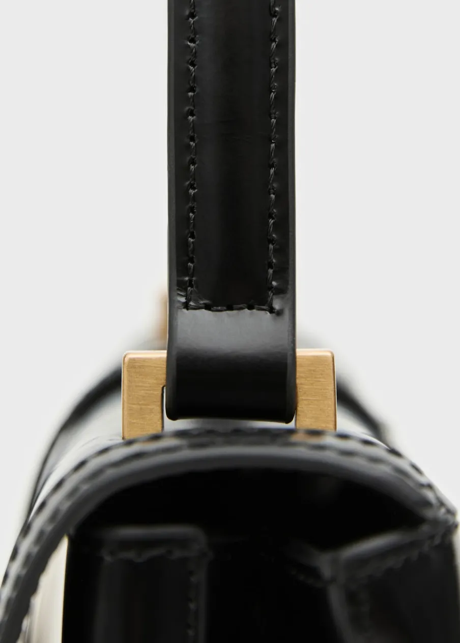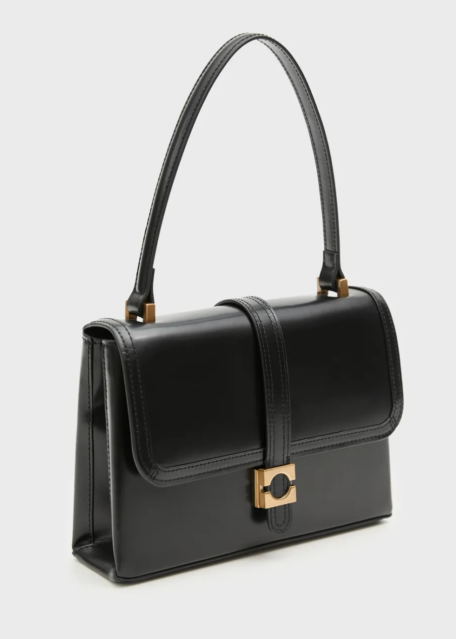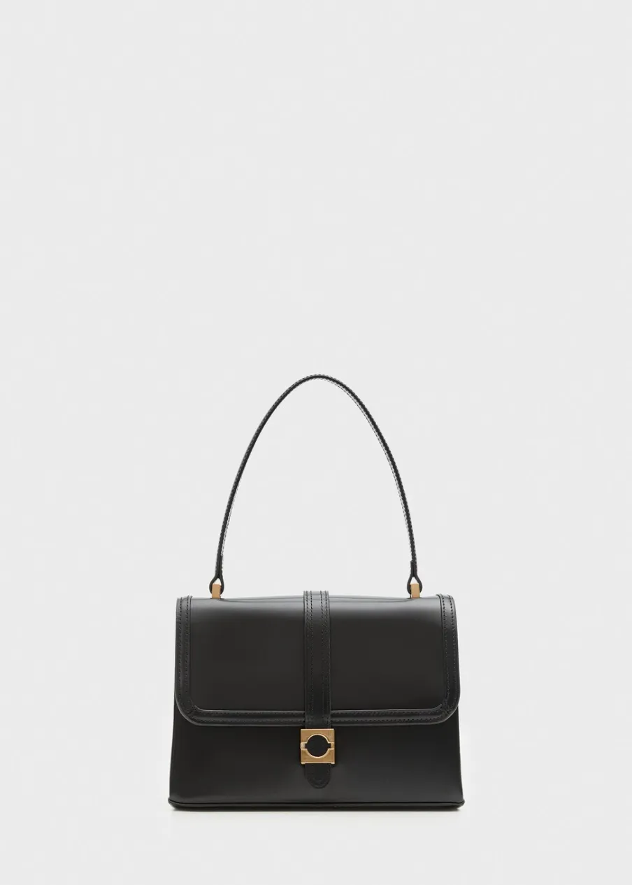 Średnia wielkość. Krótki uchwyt. Uchwyt do ręki. Podwójna przegroda. Zamknięcie na klapę. Ukryte zapięcie na magnes. Wewnętrzna podszewka. Kolekcja Selection. 100% skóra bydlęca.
