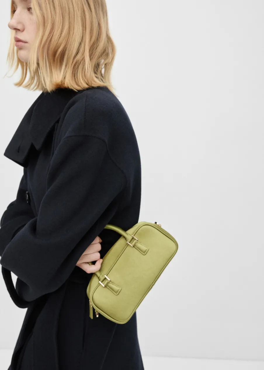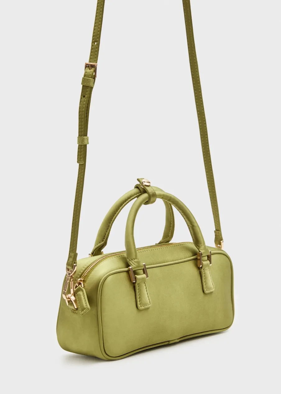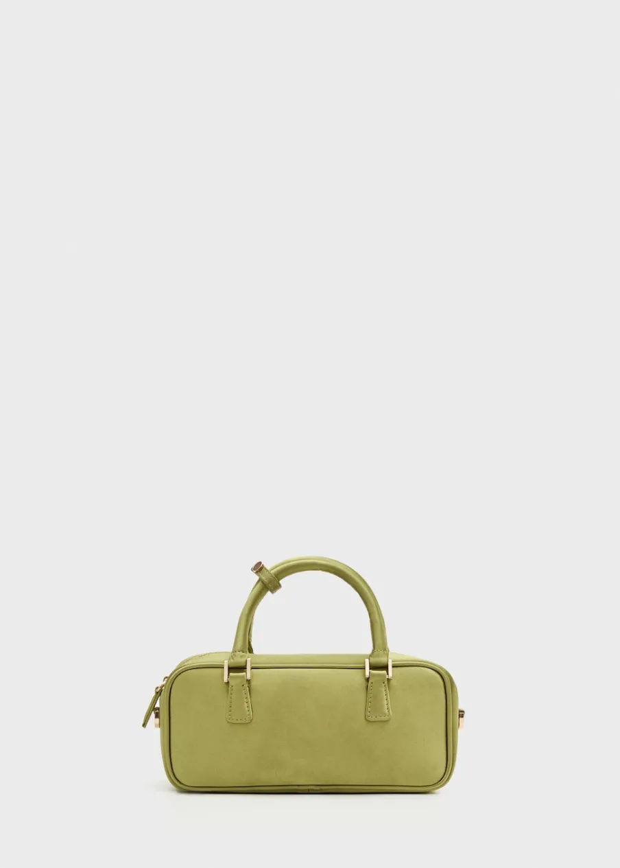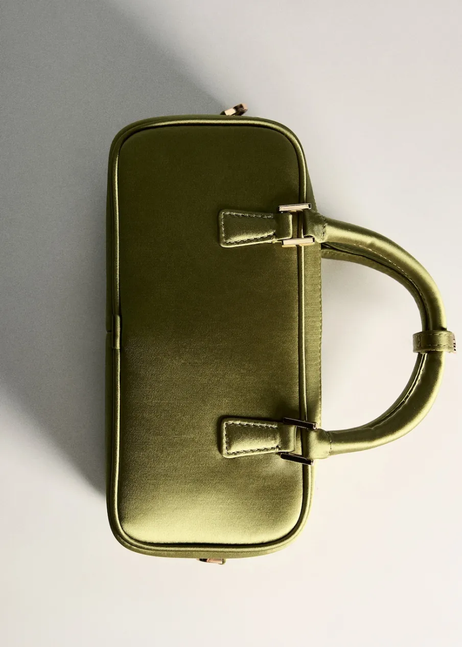 Mała wielkość. Satynowa tkanina. Styl bowling. Zapięcie na suwak. Podwójny, krótki uchwyt. Długi, odpinany uchwyt. Zapięcie na zamki. Wewnętrzna podszewka. Kolekcja Selection.