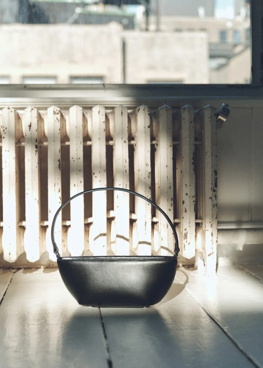 Efekt skóry. Mała wielkość. Owalny kształt. Pasek na ramię. Zapięcie na suwak. Wewnętrzna podszewka.