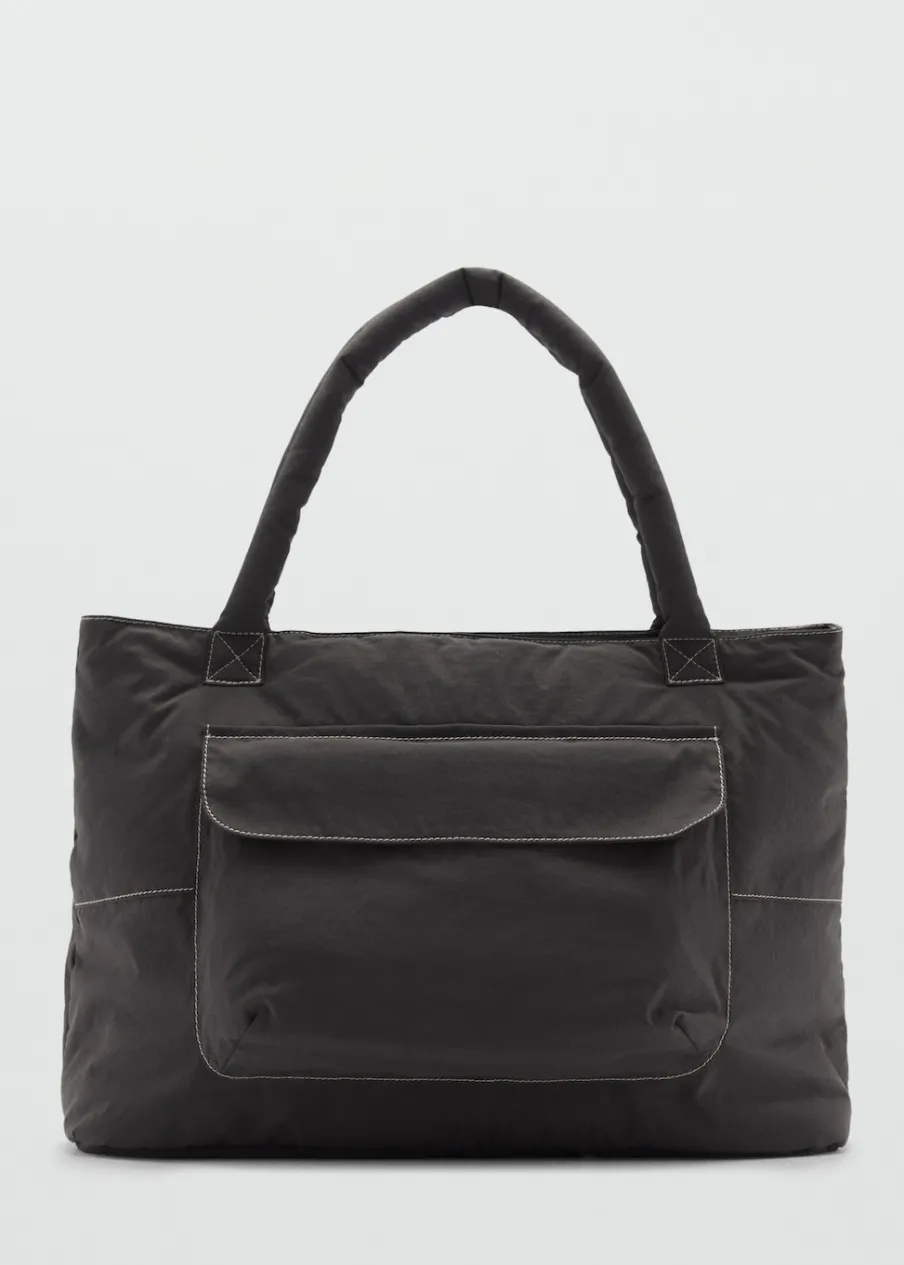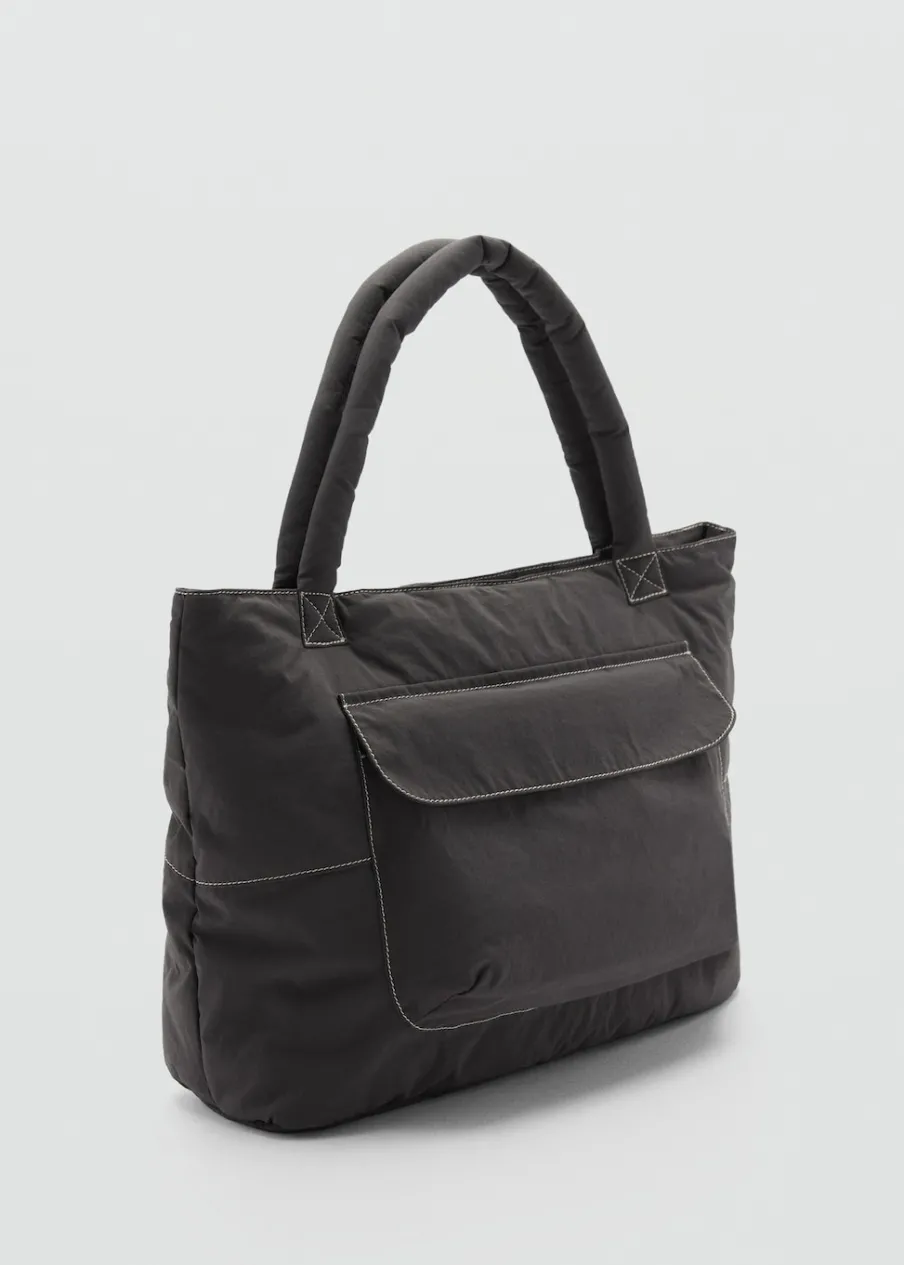 Tkanina nylonowa. Model pikowany. Dwa uchwyty. Kieszeń z patką z przodu. Zapięcie na suwak. Zdjęcie modelki wygenerowano za pomocą sztucznej inteligencji.
