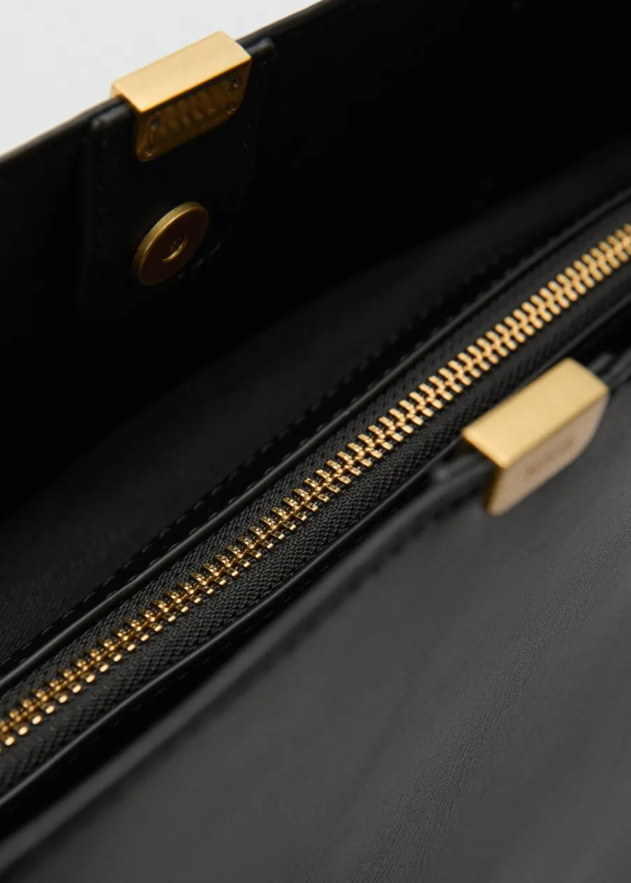 Duża wielkość. W stylu shopper. Podwójny, krótki uchwyt. Metalowy element. Metalowe zapięcie na zatrzask. Wewnętrzna kieszeń zapinana na suwak.