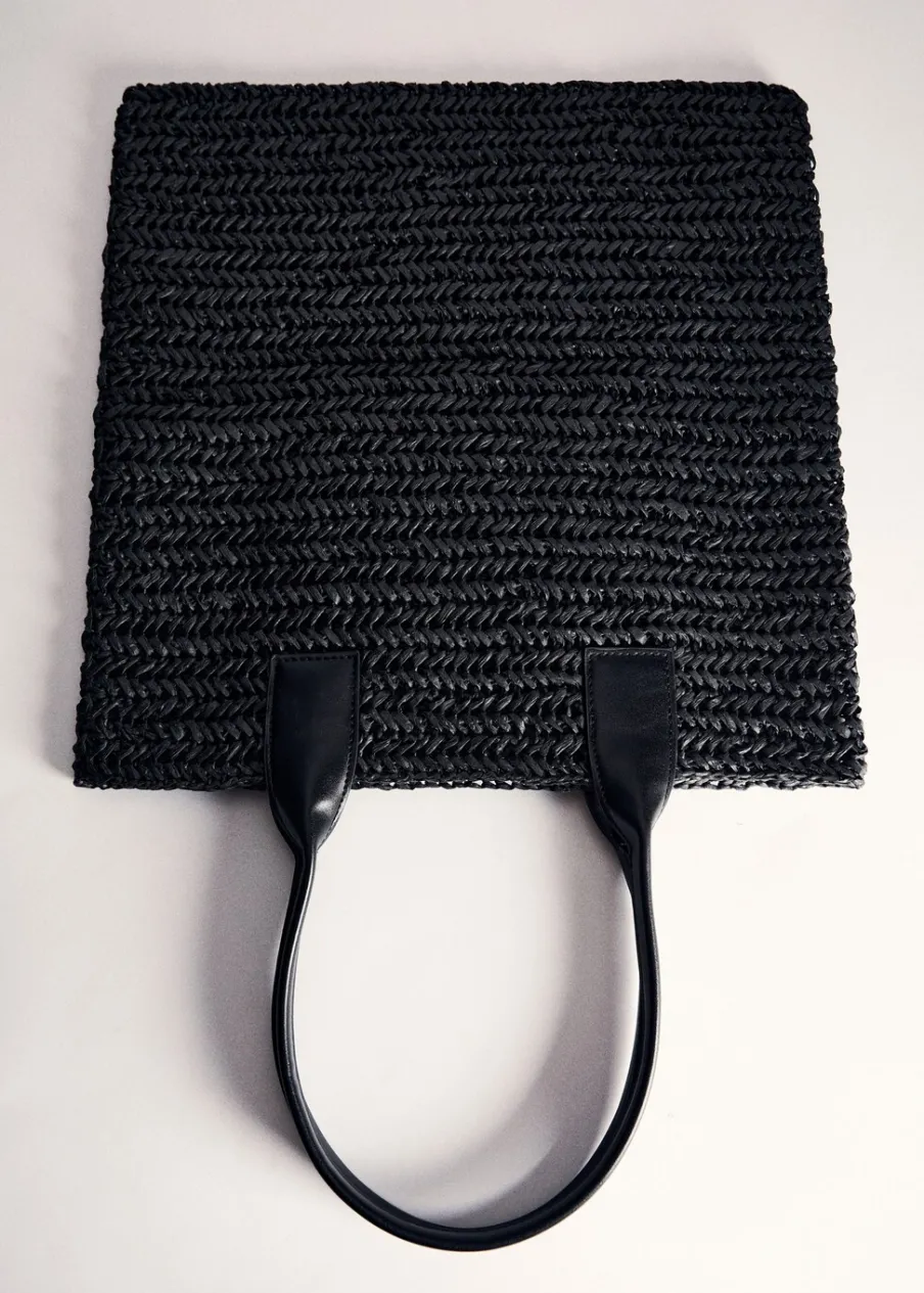 Duża wielkość. Naturalne włókna. Podwójny, krótki uchwyt. Wewnętrzna kieszeń. Bez zapięcia.