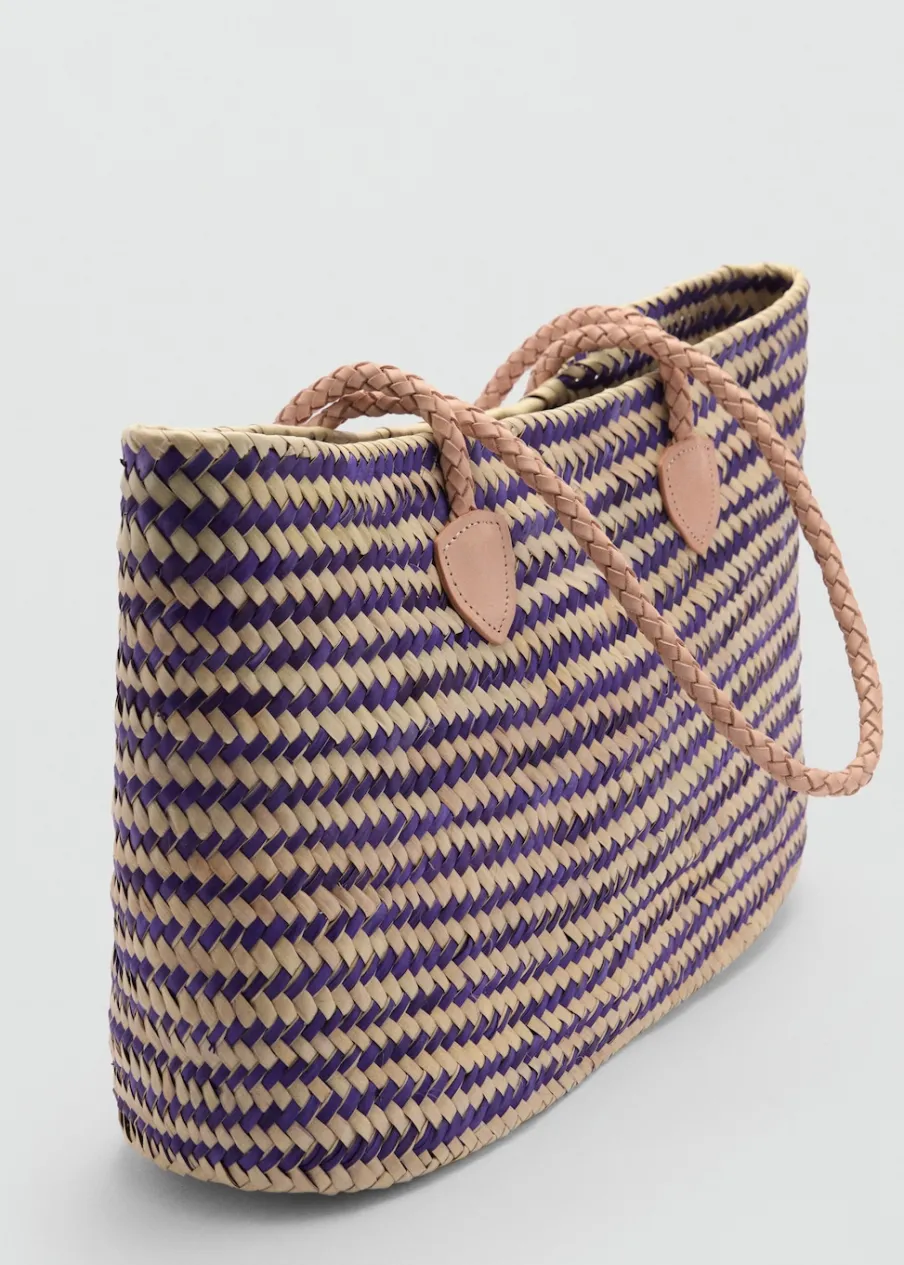 Plecione liście palmy kokosowej. Model pleciony. Model łączony. W stylu shopper. Podwójny, krótki uchwyt. Pasek na ramię. Wiązane zapięcie. Wyłącznie online. Skóra bydlęca.