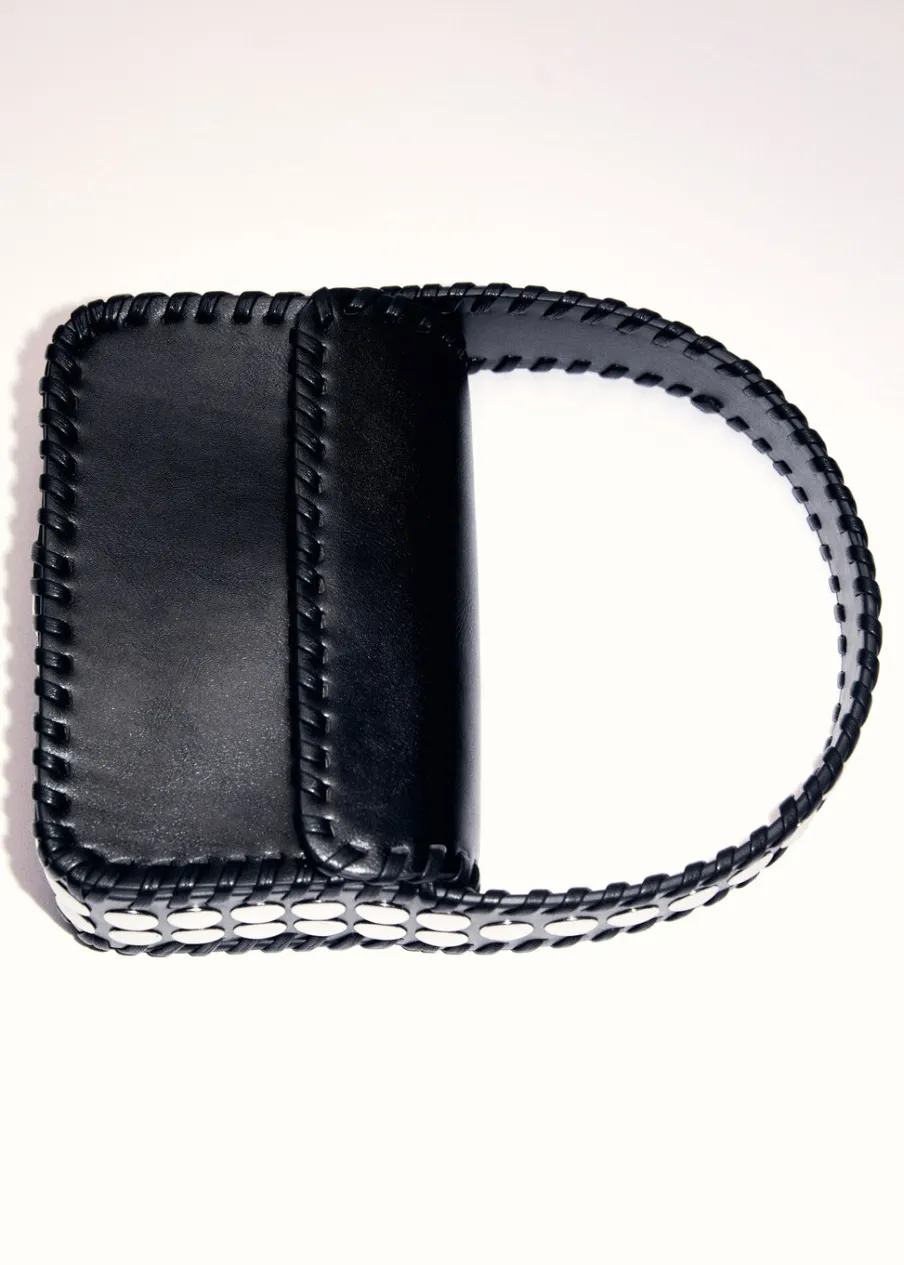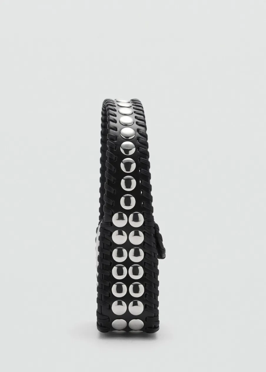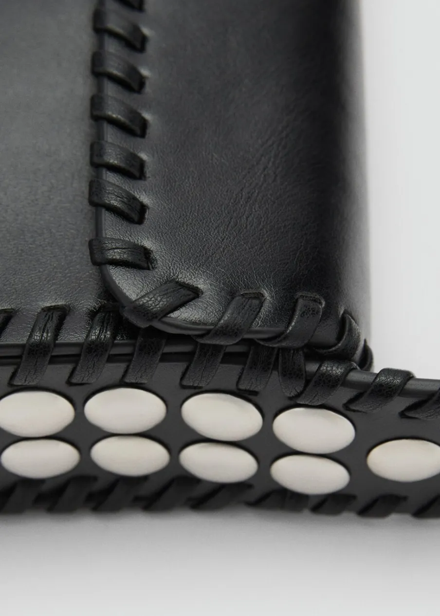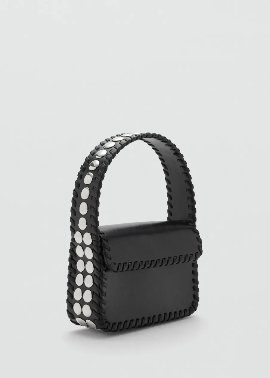 Mała wielkość. Krótki uchwyt. Uchwyt do ręki. Klapa z zapięciem na magnes. Ozdobne ćwieki. Wewnętrzna podszewka.
