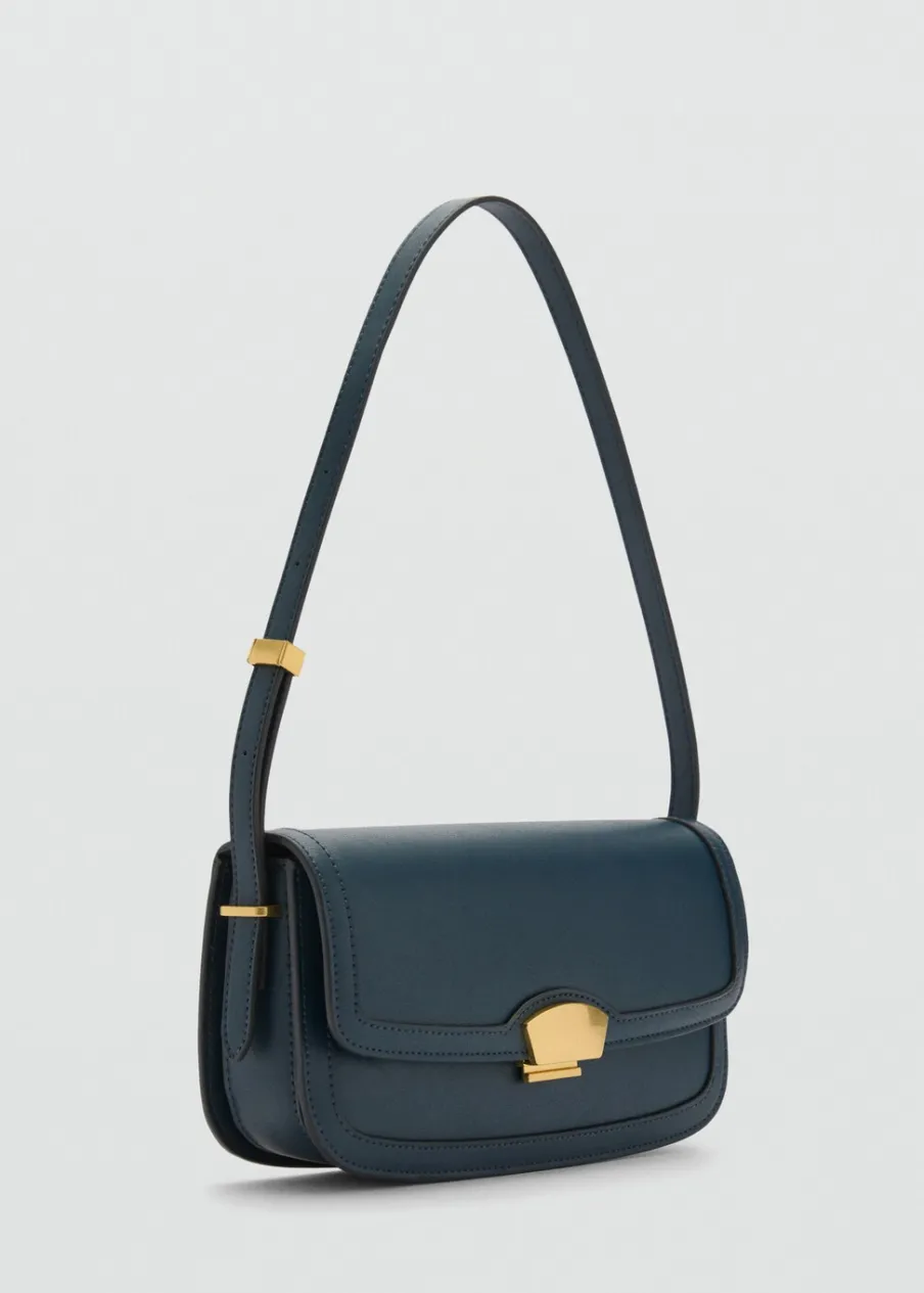 Efekt skóry. Średnia wielkość. Krótki regulowany pasek. Metalowe zapięcie. Zamknięcie na klapę.