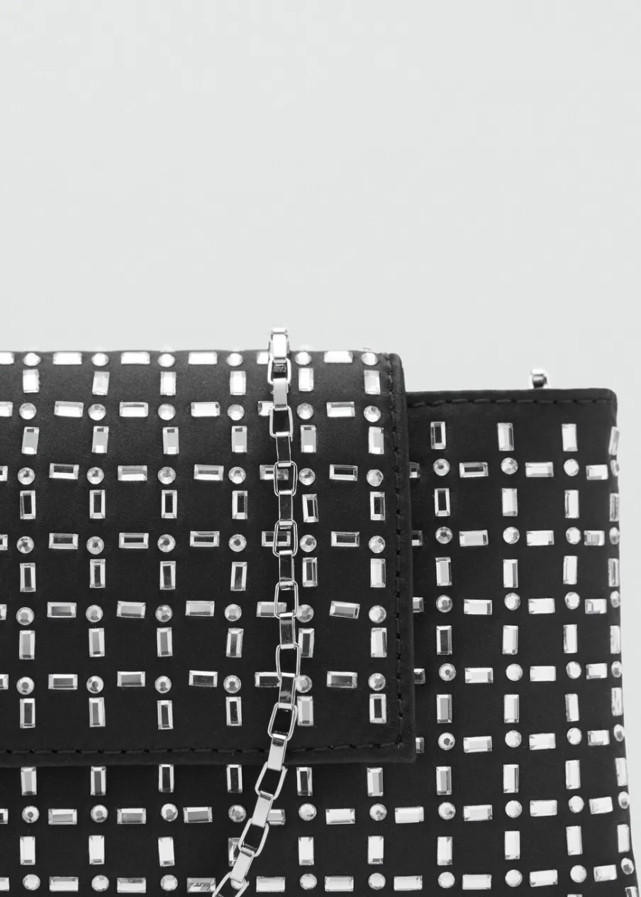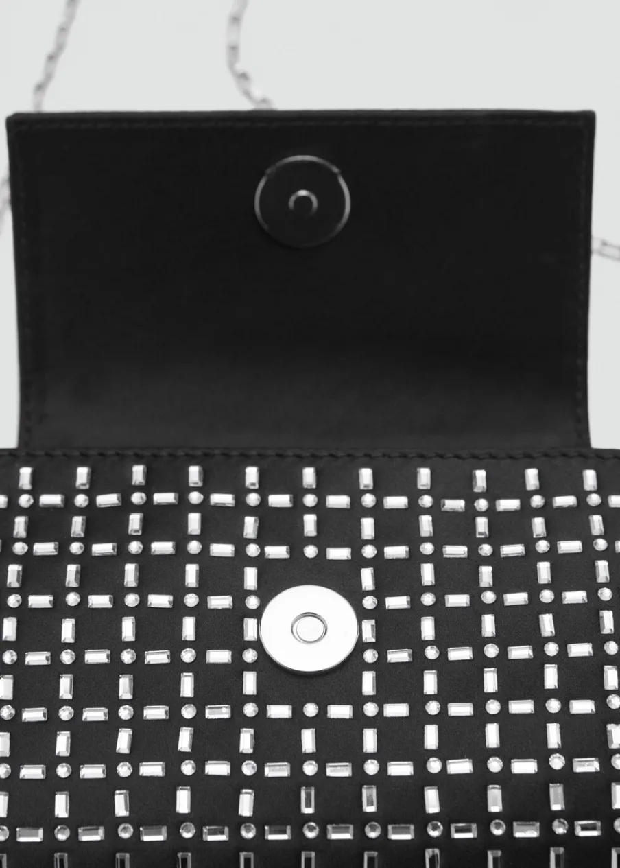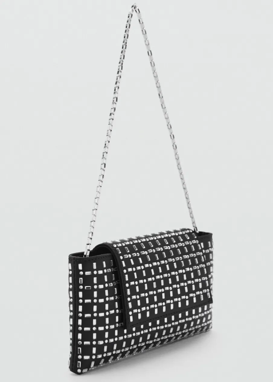 Rozmiar mini. Pasek na ramię. Krótki uchwyt. Klapa z zapięciem na magnes. Aplikacja z kryształków. Wewnętrzna podszewka.