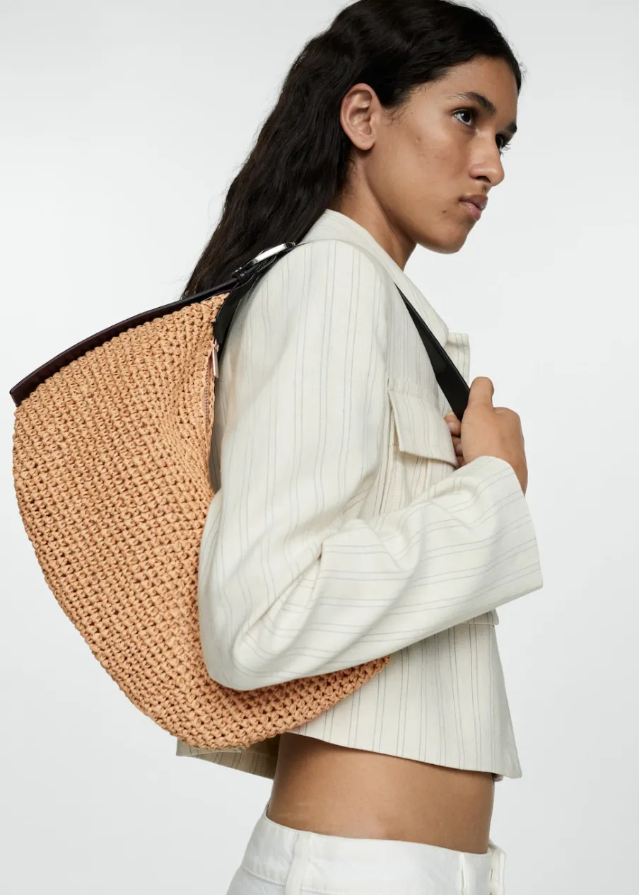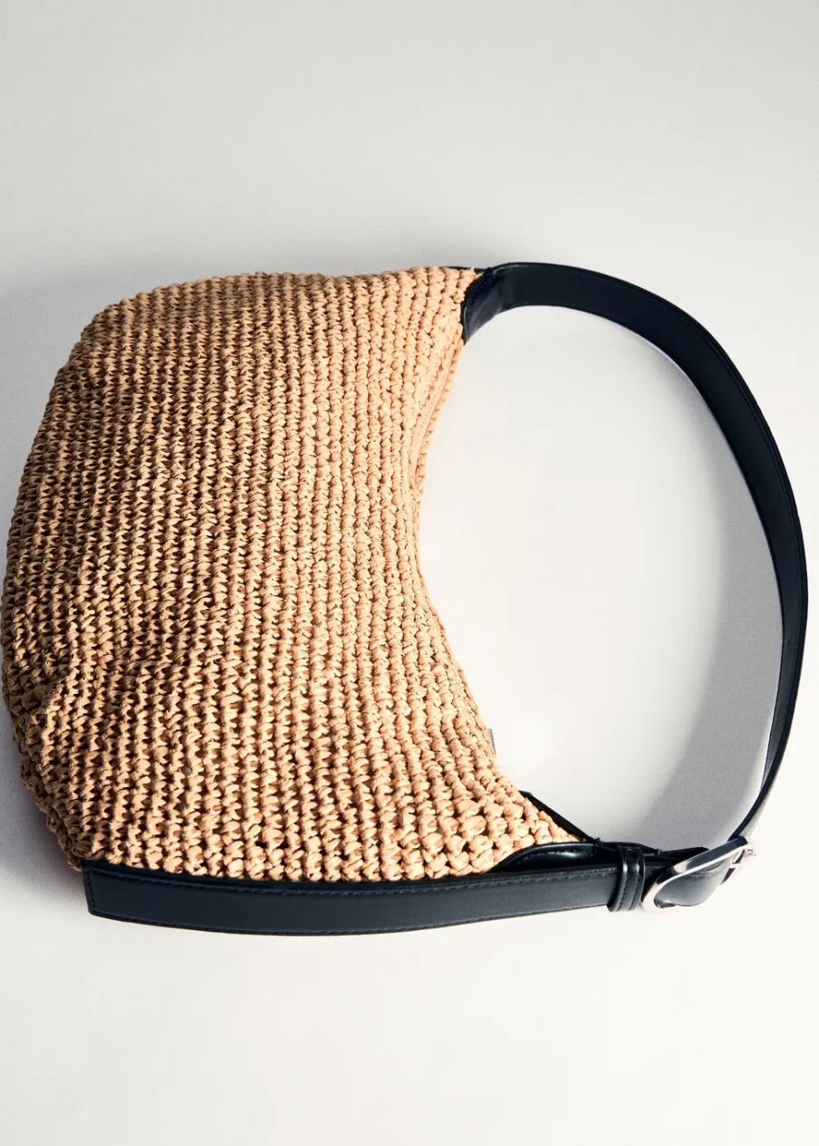 Średnia wielkość. Naturalne włókna. Krótki uchwyt. Kontrastowy uchwyt. Pasek na ramię. Zapięcie na suwak. Wewnętrzna podszewka.