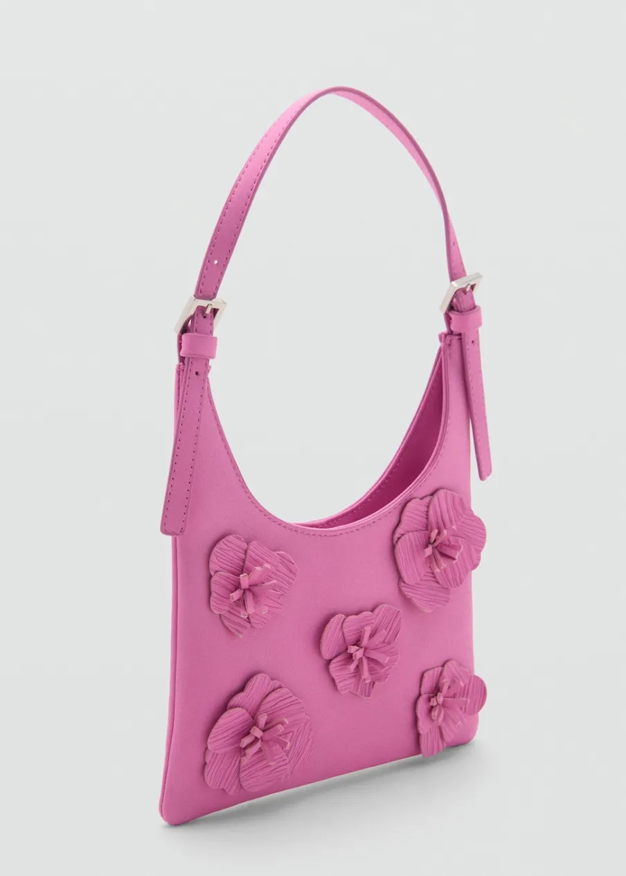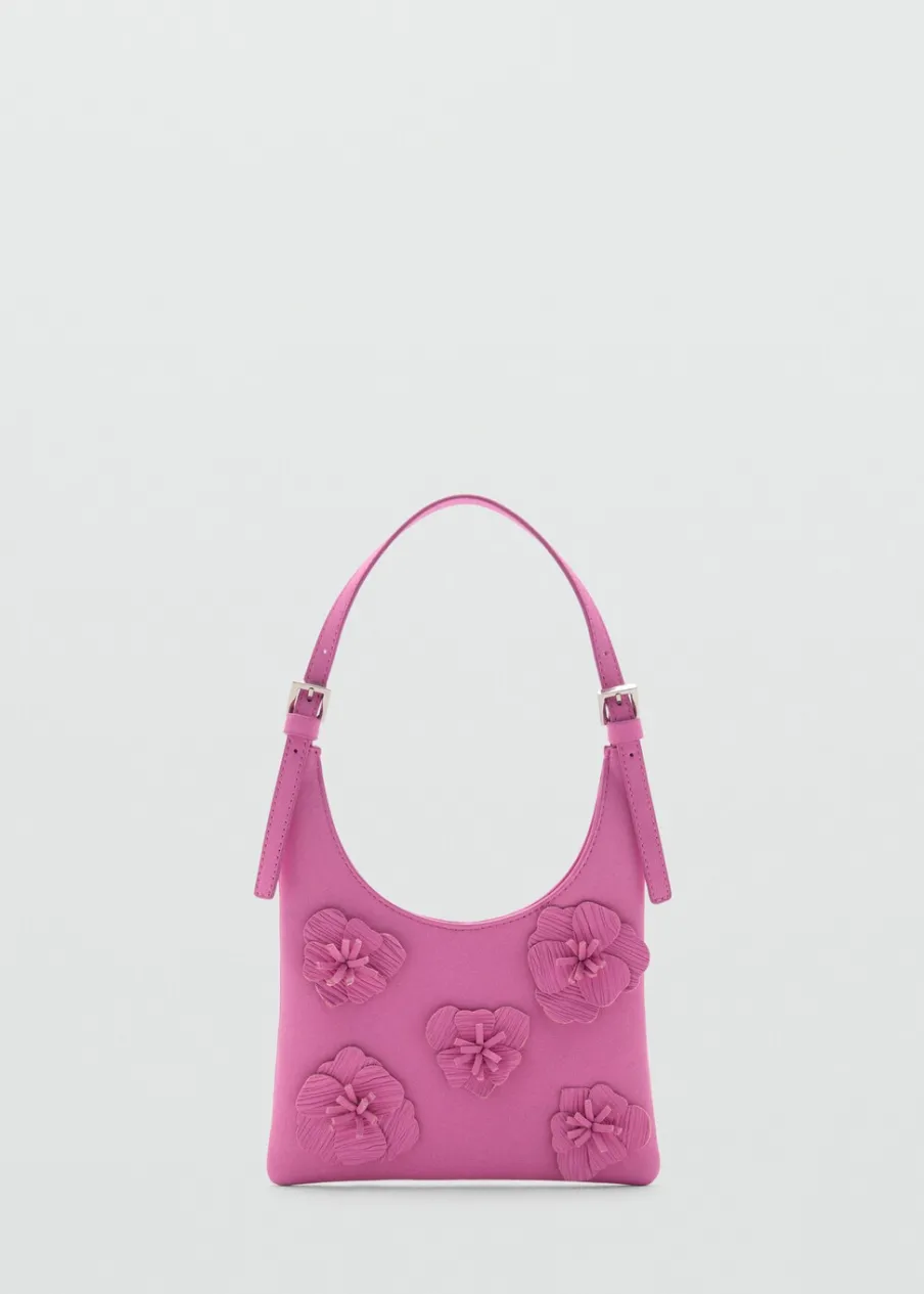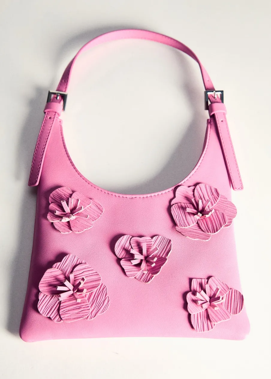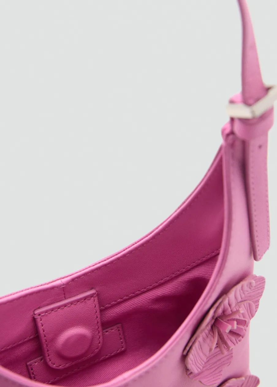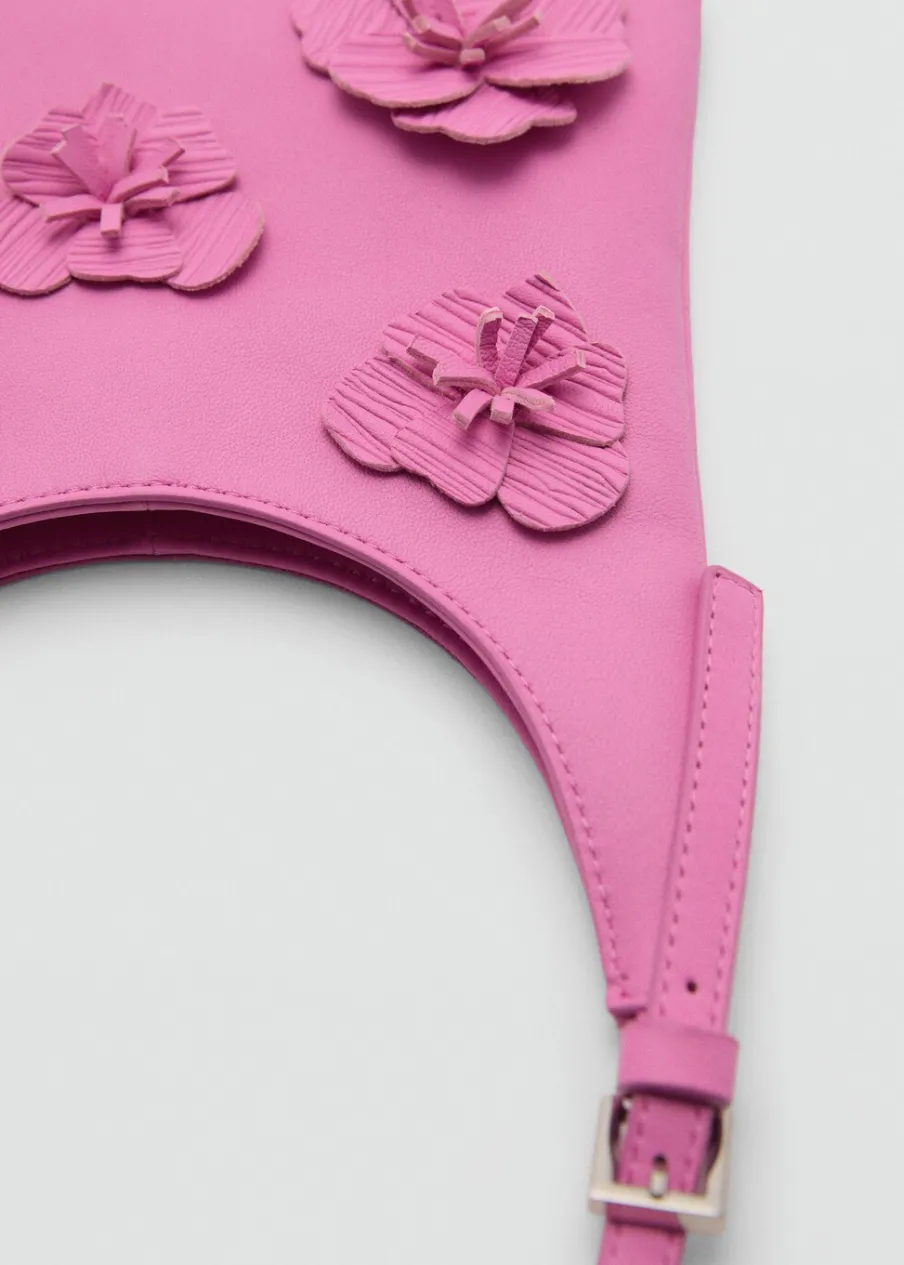 Skóra owcza 100%. Mała wielkość. Krótki regulowany pasek. Pasek na ramię. Ukryte zapięcie na magnes. Wewnętrzna podszewka. Ozdobny motyw kwiatowy.