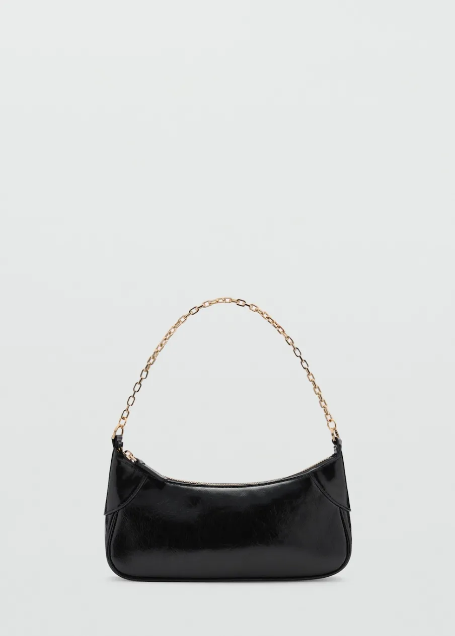 Efekt skóry. Mała wielkość. Podwójny uchwyt. Długi, regulowany uchwyt. Krótki łańcuchowy uchwyt. Zapięcie u góry na suwak.