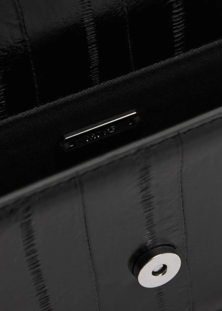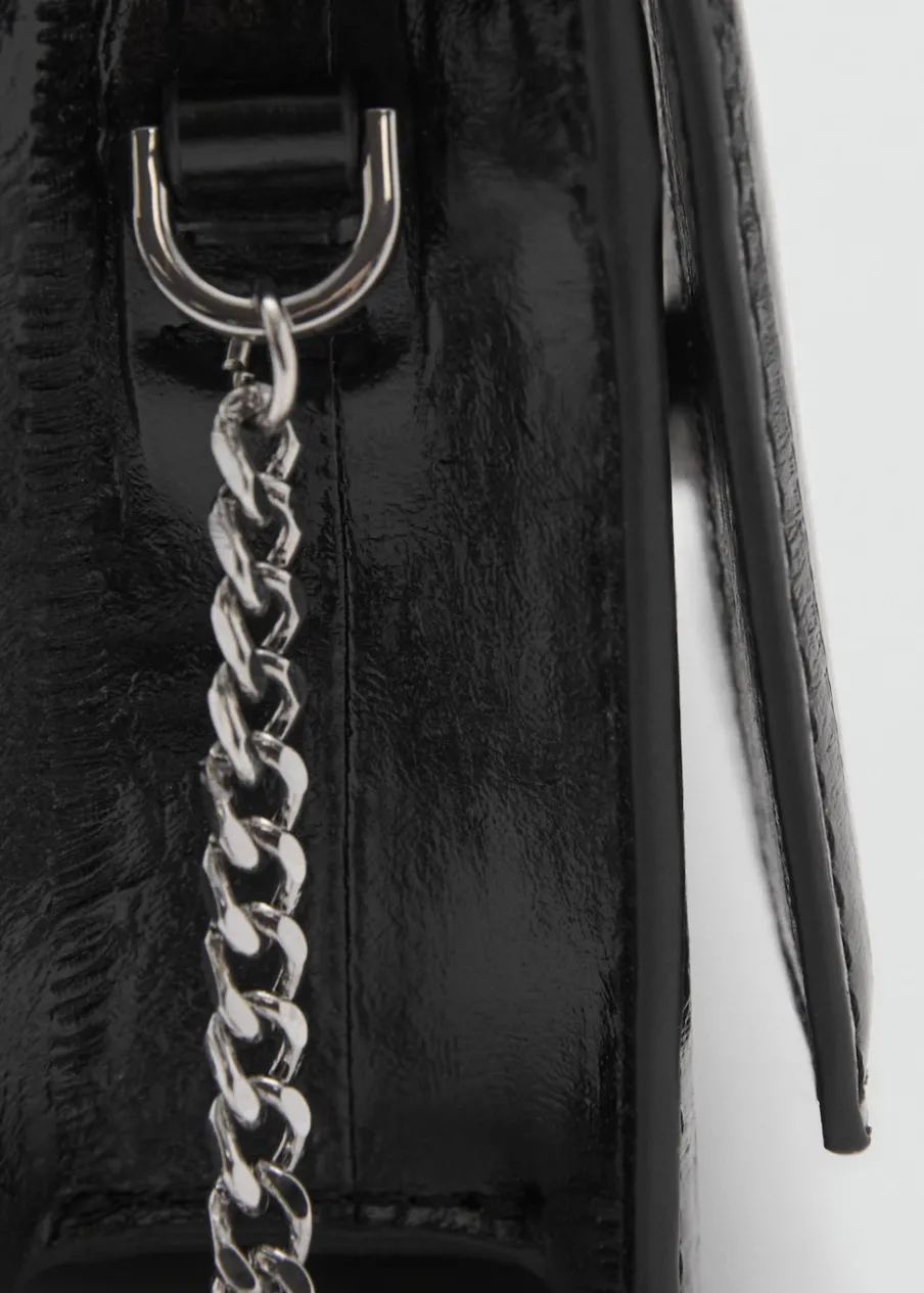 Mała wielkość. Torebka na ramię. Prostokątny kształt. Z teksturą. Efekt skóry. Długi uchwyt. Klapa z zapięciem na magnes. Wewnętrzna podszewka.