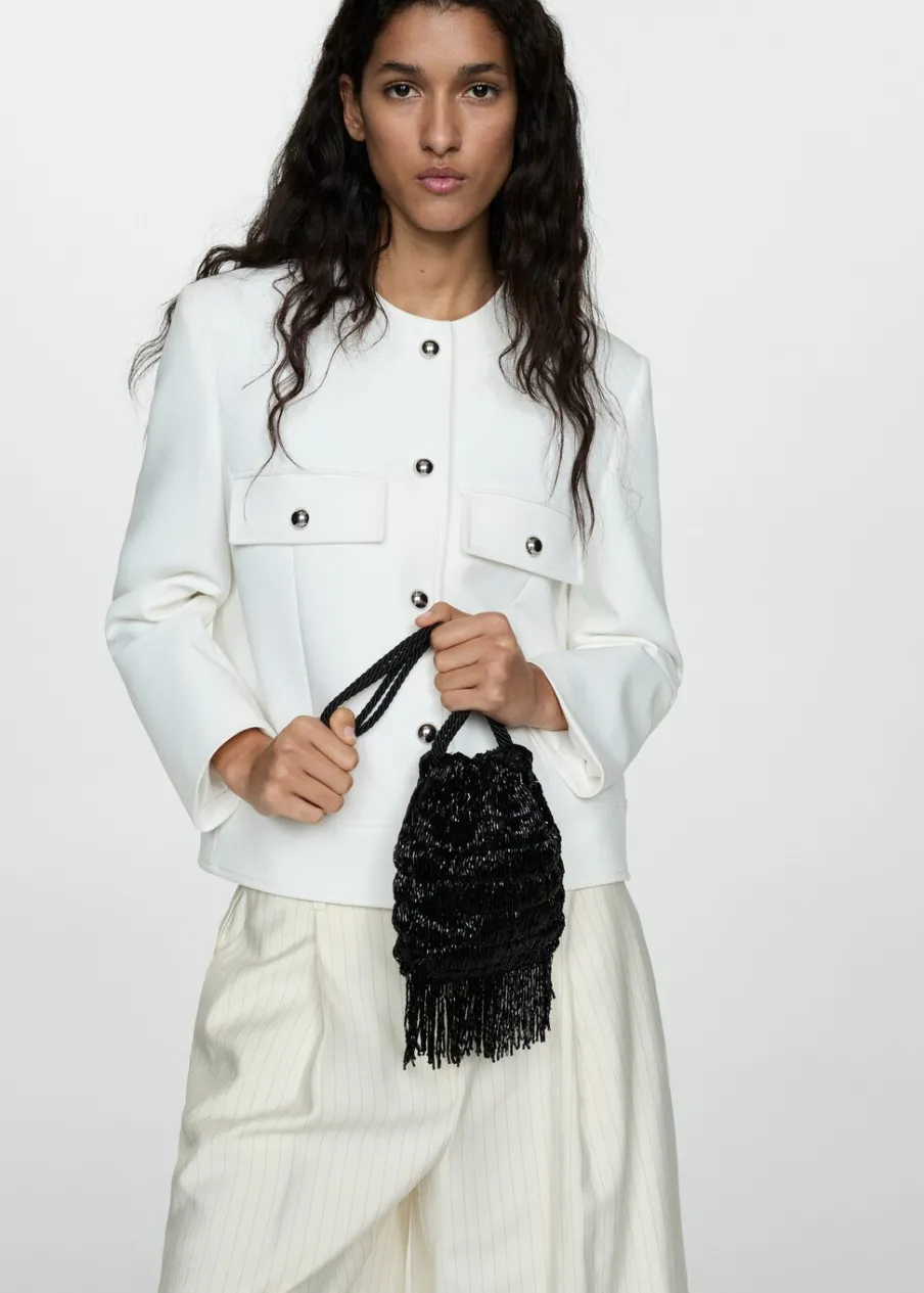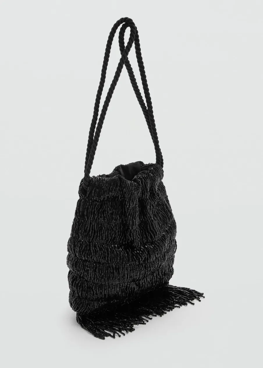 Mała wielkość. Model z frędzlami. Podwójny, krótki uchwyt. Uchwyt do ręki. Ściągacz z troczkami. Ozdobne koraliki. Wewnętrzna podszewka.