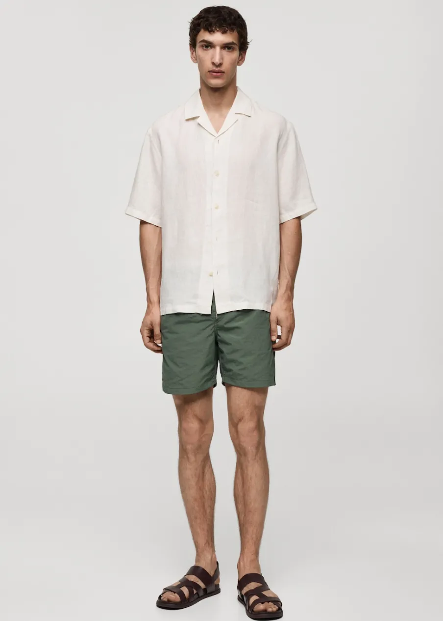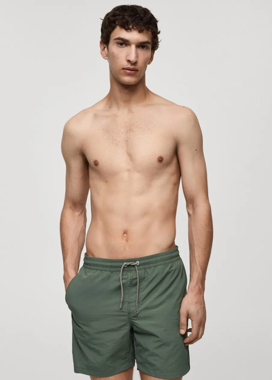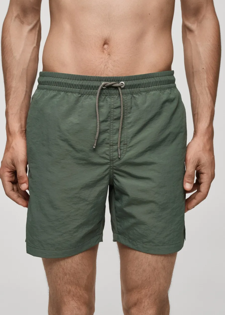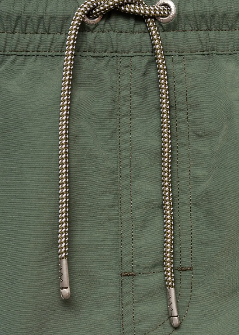 Tkanina gładka. Elastyczny pas z regulowanym sznurkiem. Dwie kieszenie z przodu. Nakładana kieszeń z tyłu. Model ma 187 cm wzrostu i nosi rozmiar M.