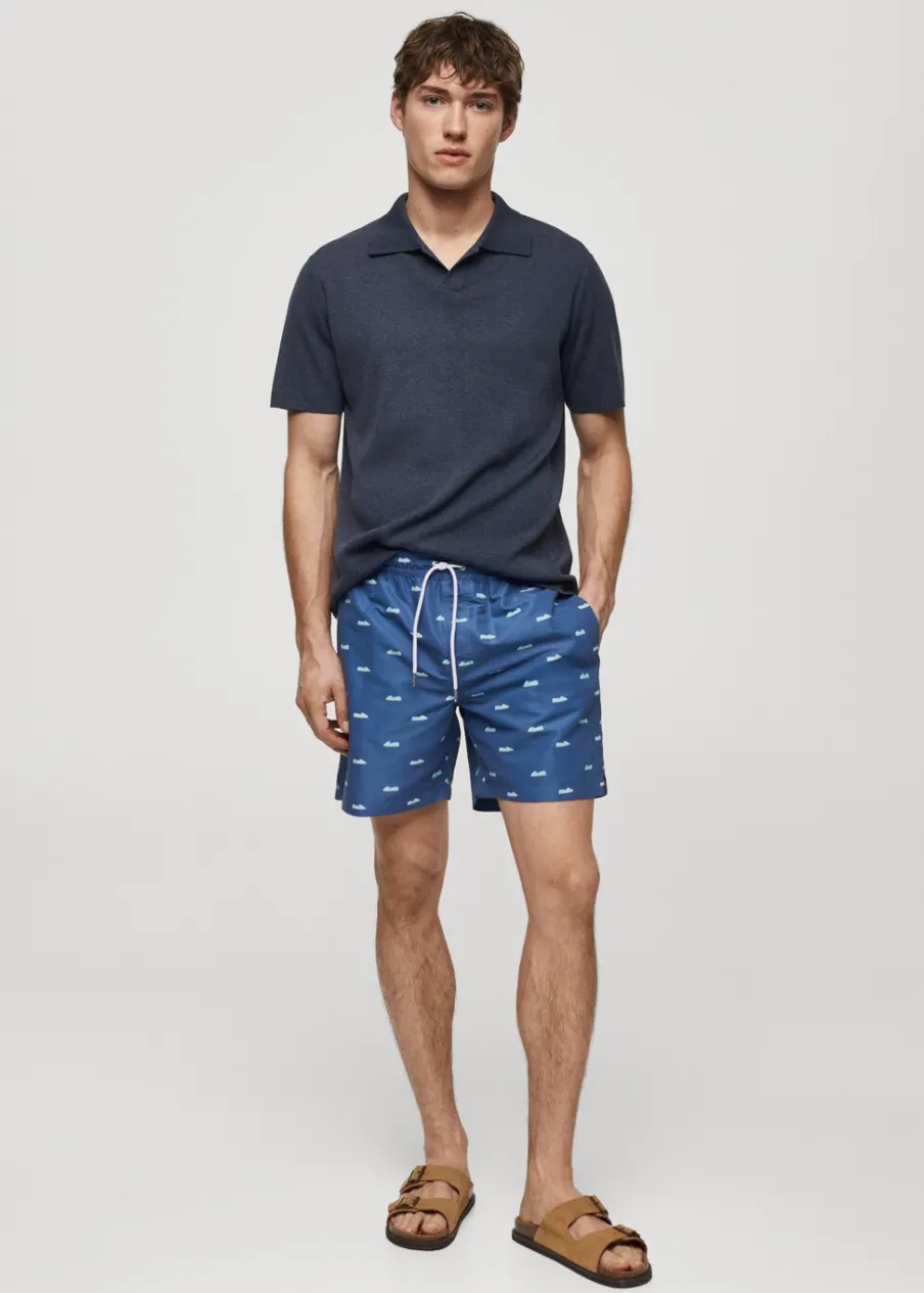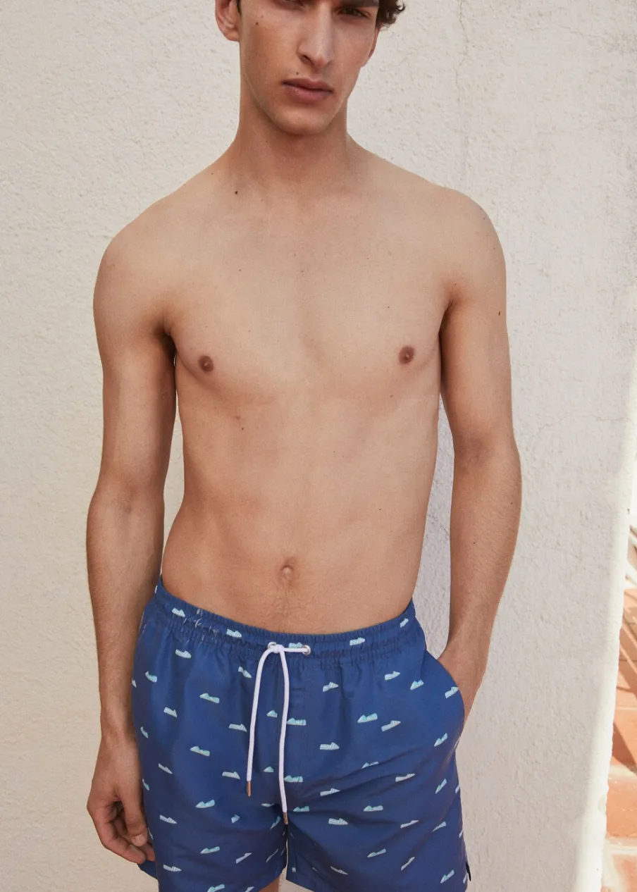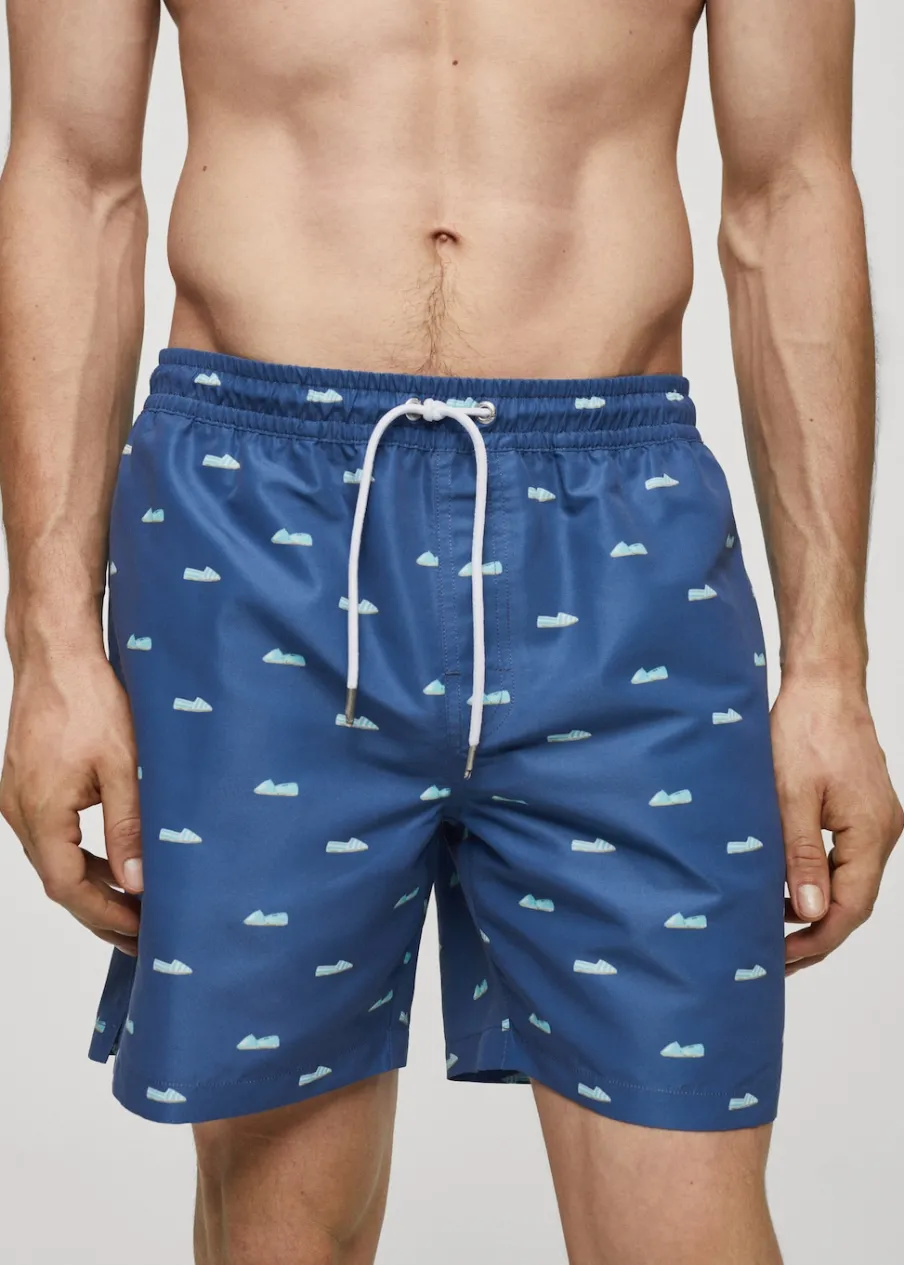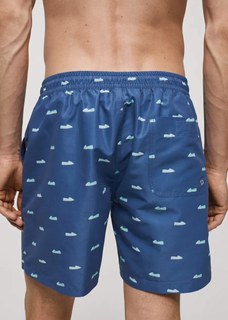 Elastyczny pas z regulowanym sznurkiem. Tylna kieszeń nakładana zapinana na rzep. Model ma 185 cm wzrostu i nosi rozmiar M. Nadruk w espadryle.