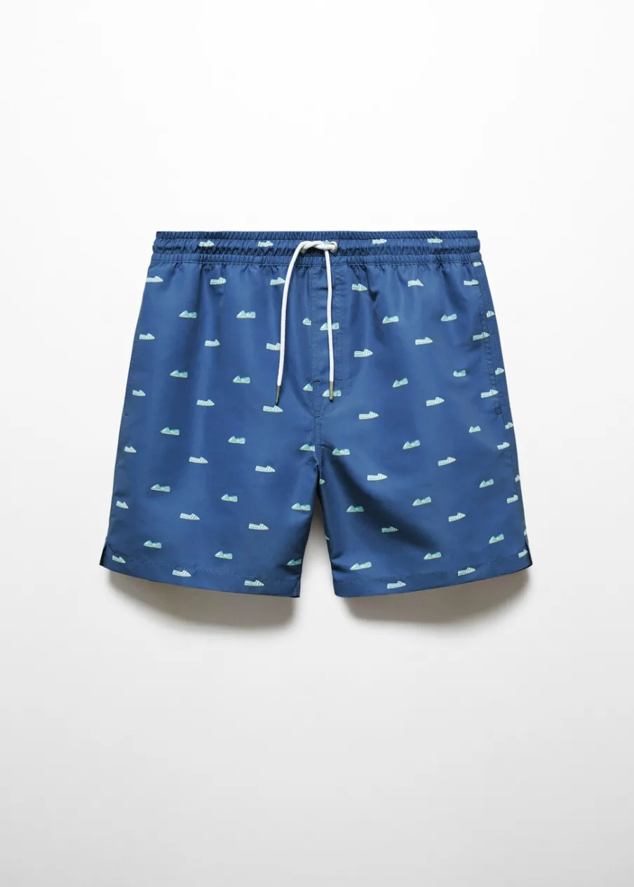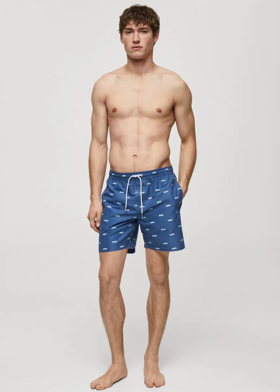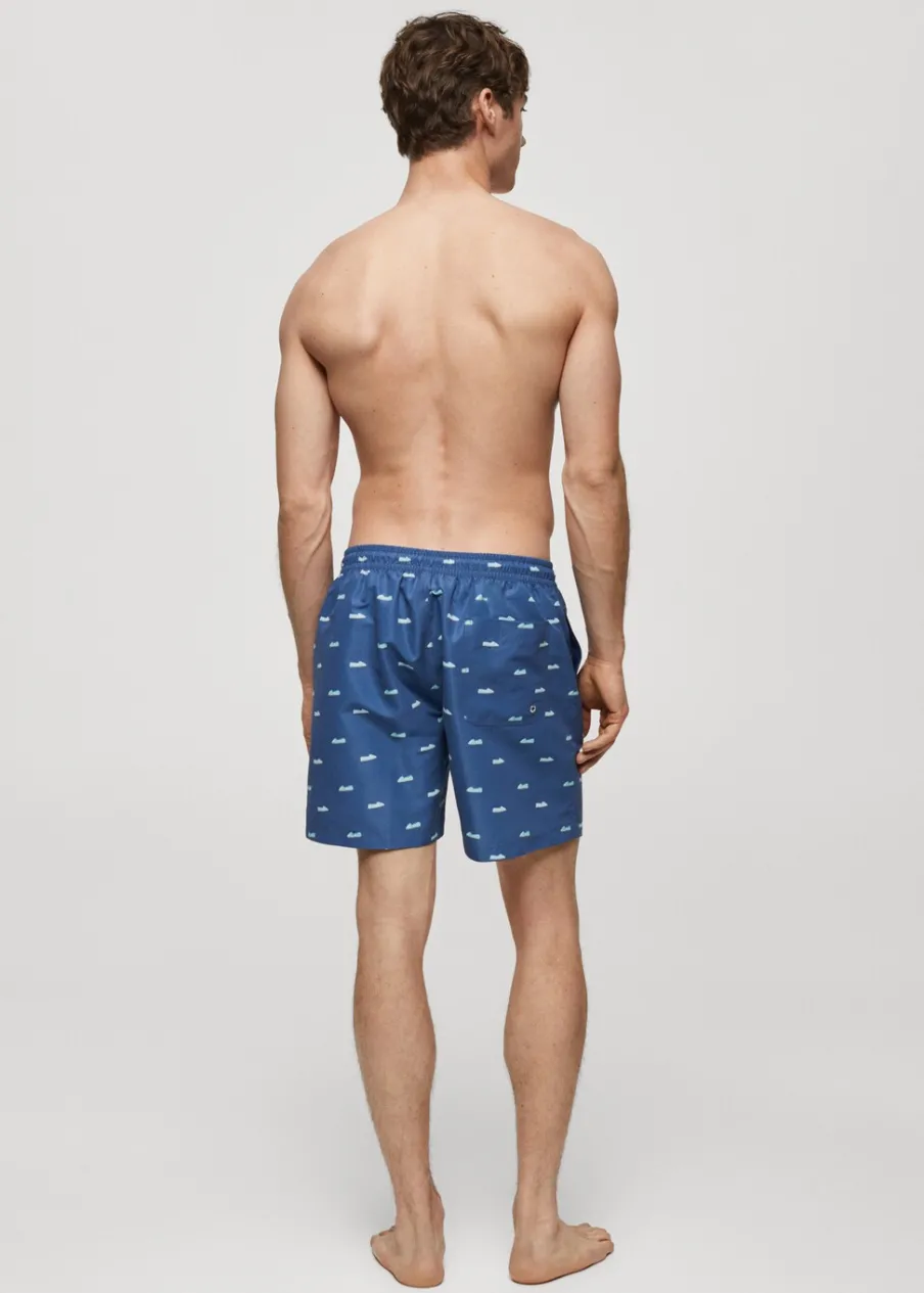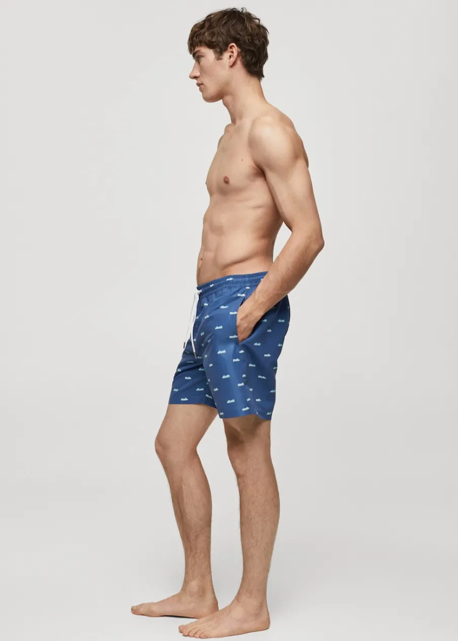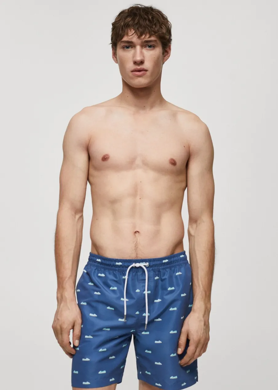 Elastyczny pas z regulowanym sznurkiem. Tylna kieszeń nakładana zapinana na rzep. Model ma 185 cm wzrostu i nosi rozmiar M. Nadruk w espadryle.