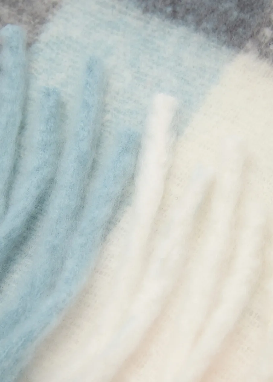 OpisDeseń w kratę. Wykończenia z frędzlami.