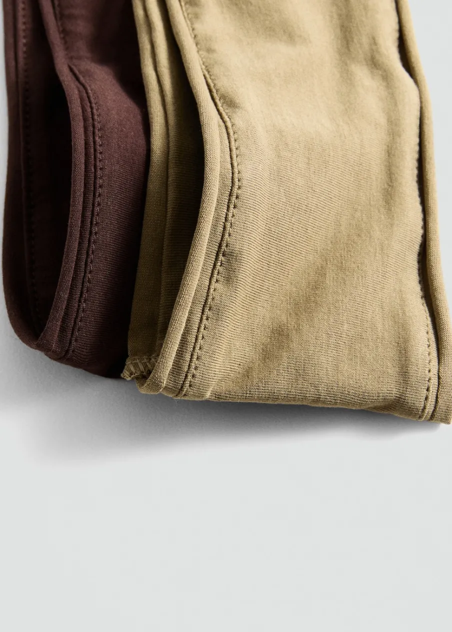 OpisBawełniana tkanina. Elastyczna tkanina. Zestaw dwóch par. Bez zapięcia.