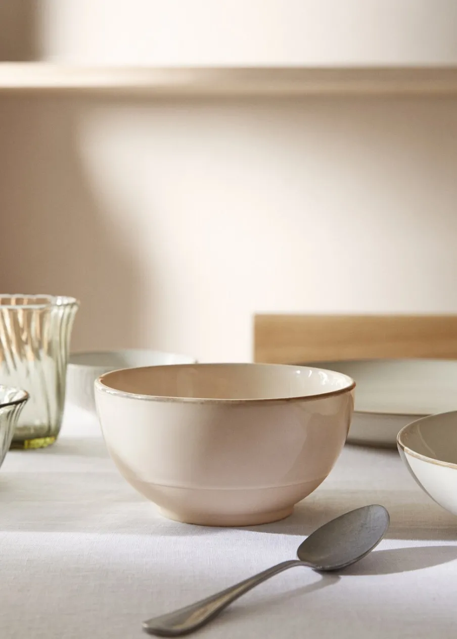 100% kamionka. Średnica: 14 cm. W stylu rustykalnym. Naczynie na żywność. Przybory kuchenne. Skompletuj look za pomocą innych produktów z kolekcji. W postarzanym stylu. Kontrastowa obwódka.