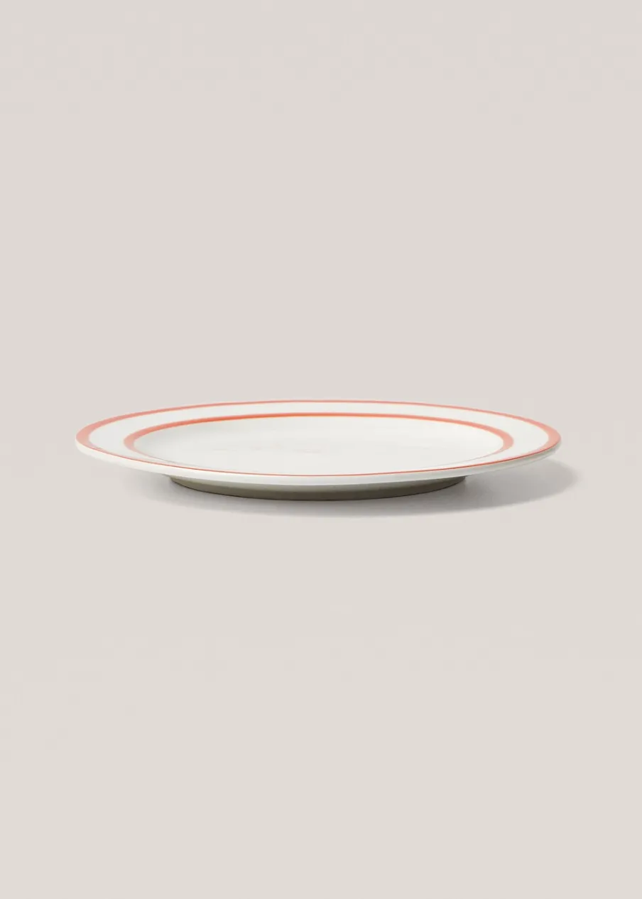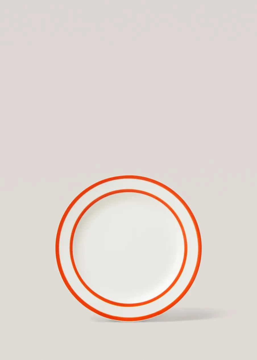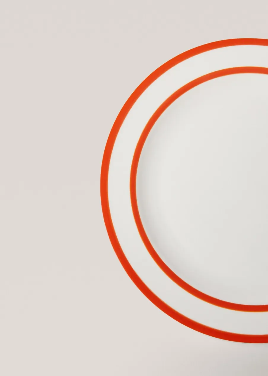 Malowany ręcznie wzór. Mogą występować drobne różnice w wykonaniu. Talerz deserowy. 100% kamionka. Model z podwójną obwódką. Dodaj wyrafinowania swoim deserom za pomocą naszego talerza z podwójną obwódką w kontrastowym kolorze. Został starannie wykonany z wysokiej jakości kamionki, aby zapewnić mu nadzwyczajną trwałość i wyróżniający się wygląd na stole. Średnica: 23 cm.