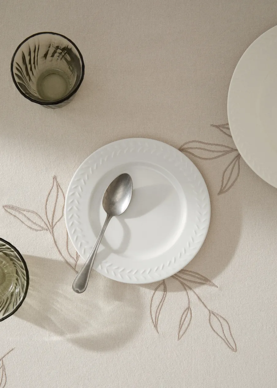 100% kamionka. Naszywane kwiatki. Naczynie na żywność. Skompletuj zastawę stołową za pomocą pozostałych produktów z kolekcji. Można myć w zmywarce. Średnica: 19,5 cm.