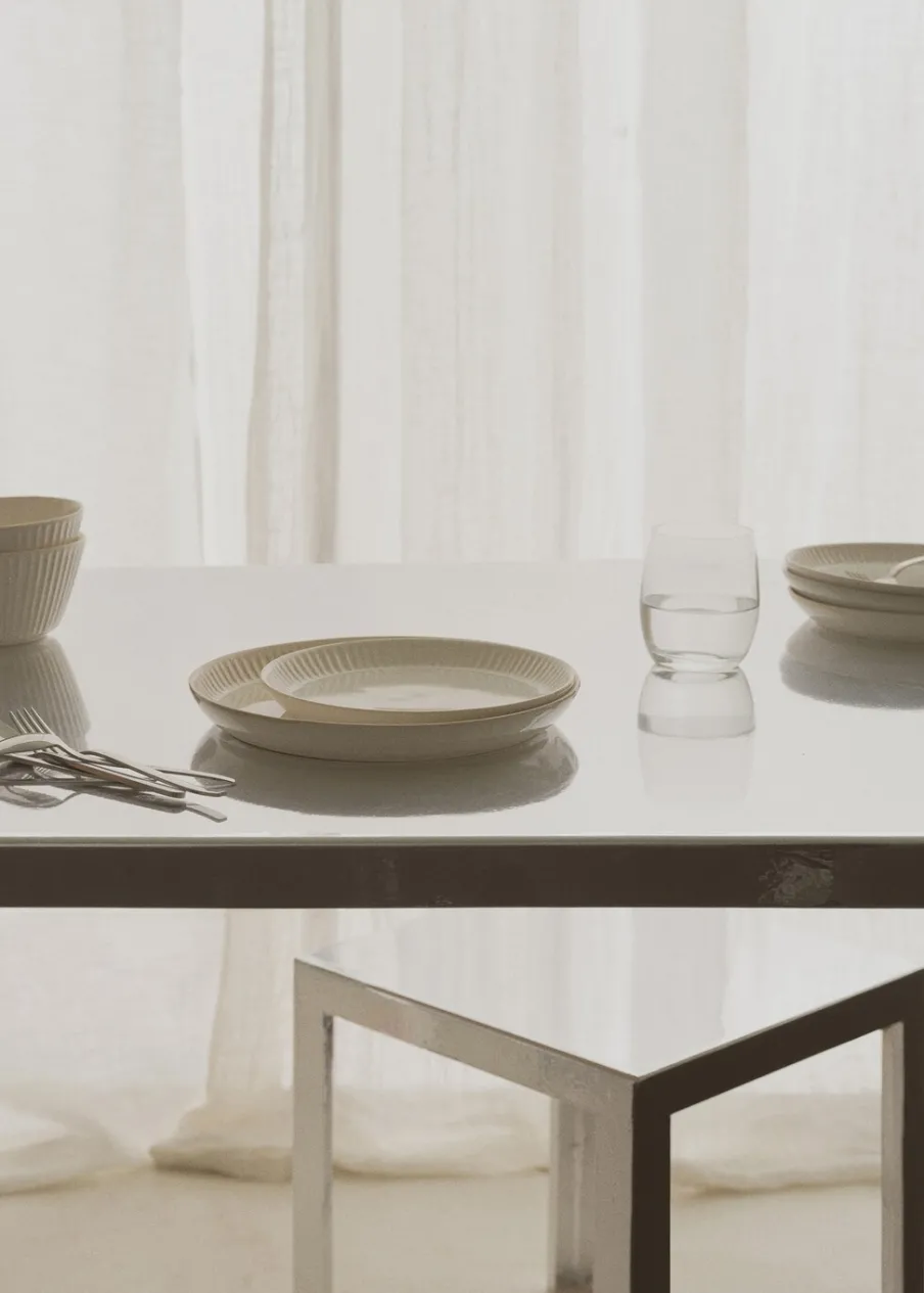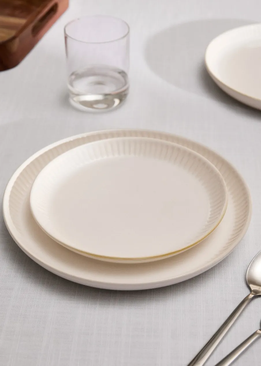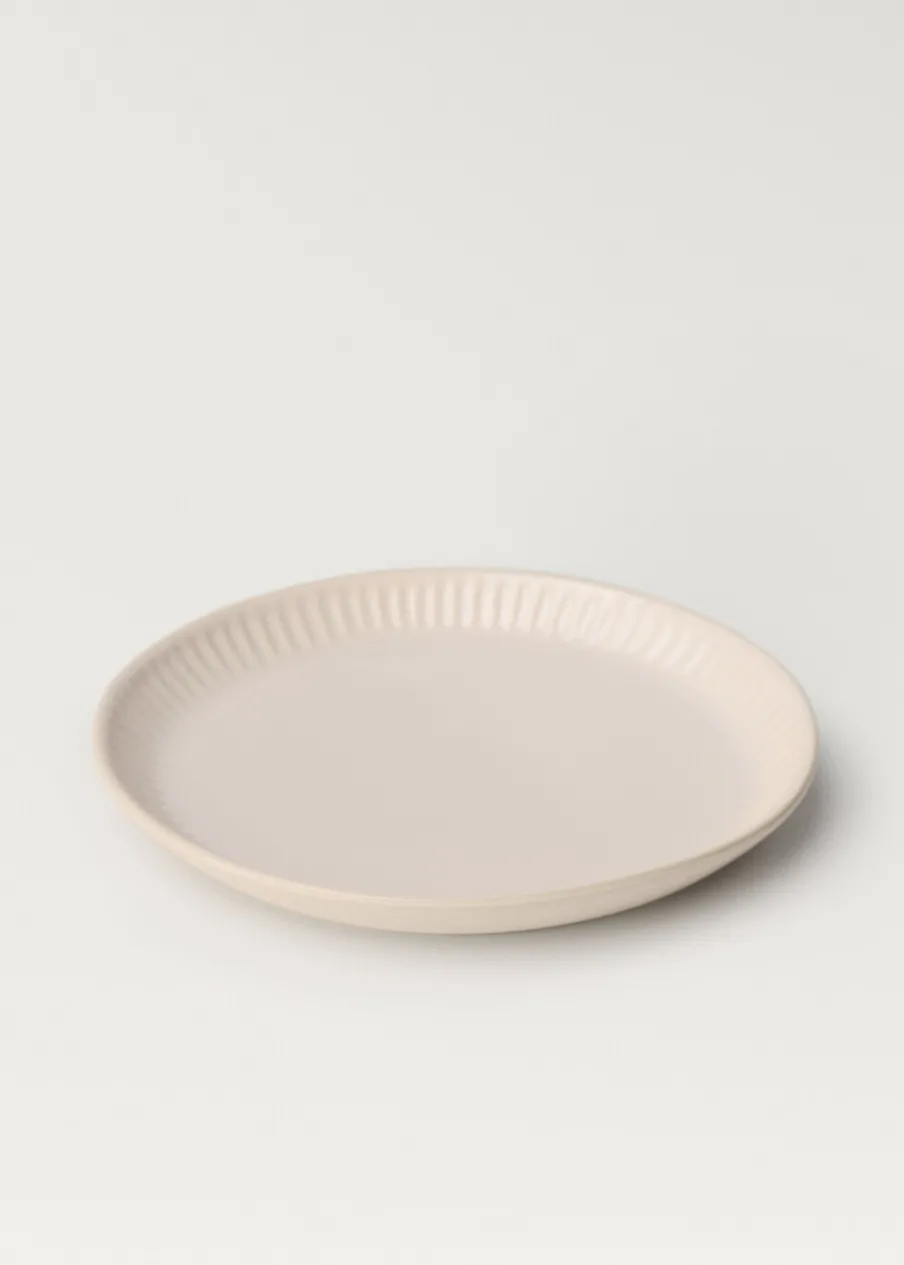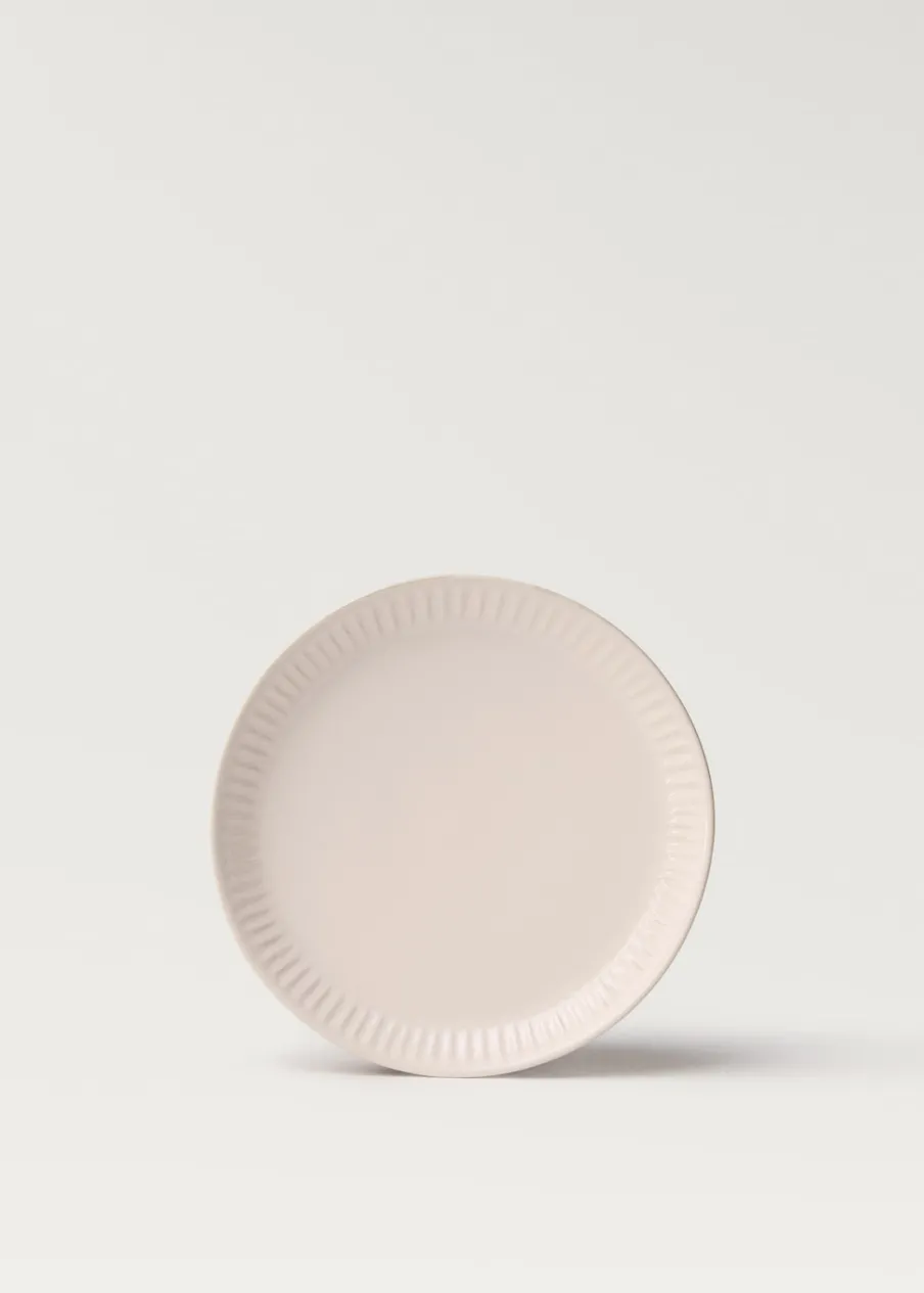 100% kamionka. Talerz deserowy. Nadaje się do przechowywania żywności. Sprzedaż na sztuki. Połącz z innymi produktami z kolekcji. Średnica: 20 cm. Wypukły wzór w fale. Łączy rustykalne wzornictwo z elegancką teksturą. Idealny wybór, aby dodać świeżości i elegancji do nakrycia stołu. W idealnym rozmiarze na porcję słodkości.