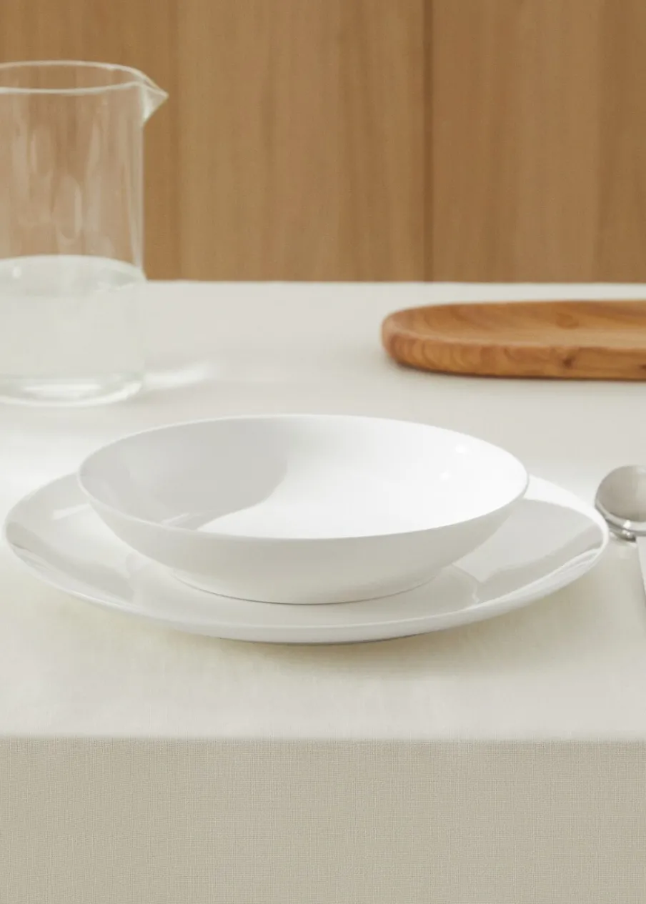 Średnica: 21 cm. 100% porcelana kostna. Porcelana kostna jest wysokiej jakości porcelaną w najczystszym odcieniu bieli. Biały. Model z serii basic. Model standardowy. Naczynie na żywność. Skompletuj zastawę stołową za pomocą pozostałych produktów z kolekcji.