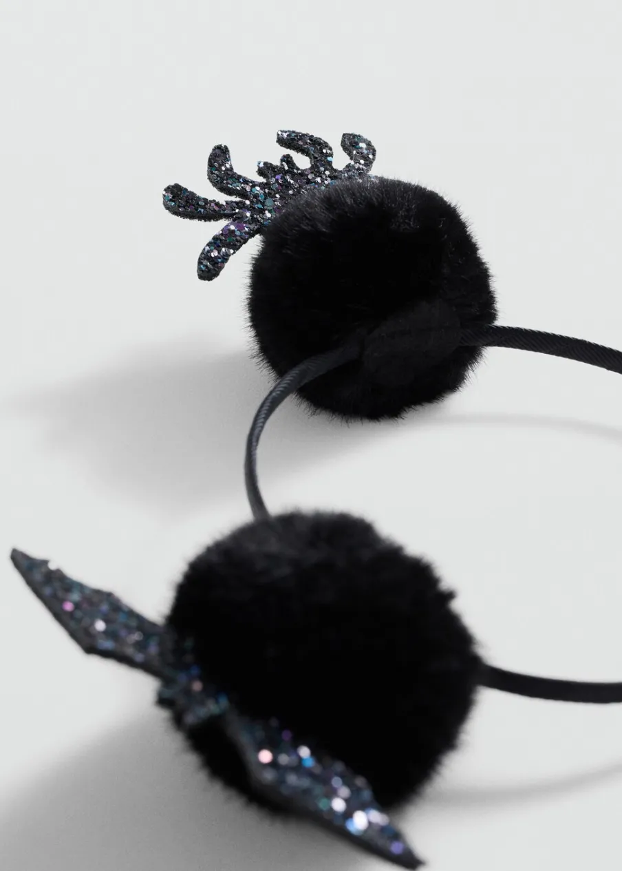 OpisKolekcja Halloween. Motyw nietoperza. Ozdobne pompony. Z ozdobnym brokatem.