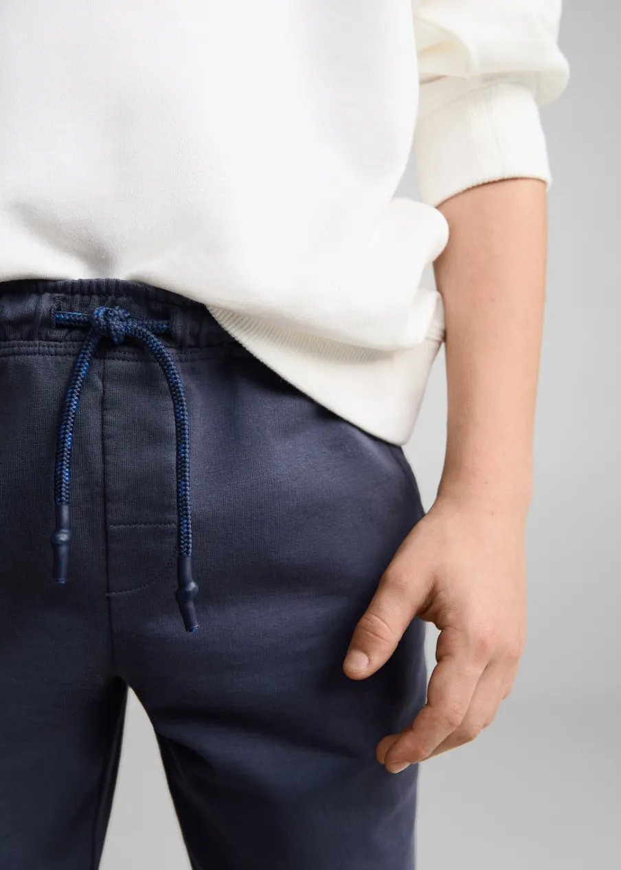 Bawełna 100%. Krótki krój. Model prosty. Elastyczny pas. Dwie kieszenie z przodu. Zapięcie ze sznurkiem do regulacji.
