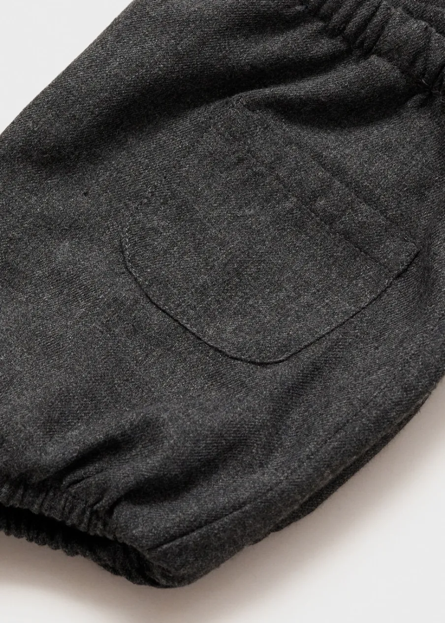 Tkanina z bawełną. Model prosty. Krótki krój. Elastyczny pas. Kieszeń nakładana. Elastyczne wykończenie. Bez zapięcia.