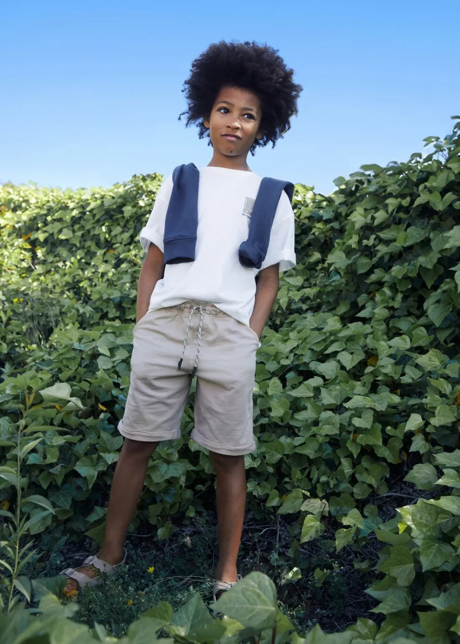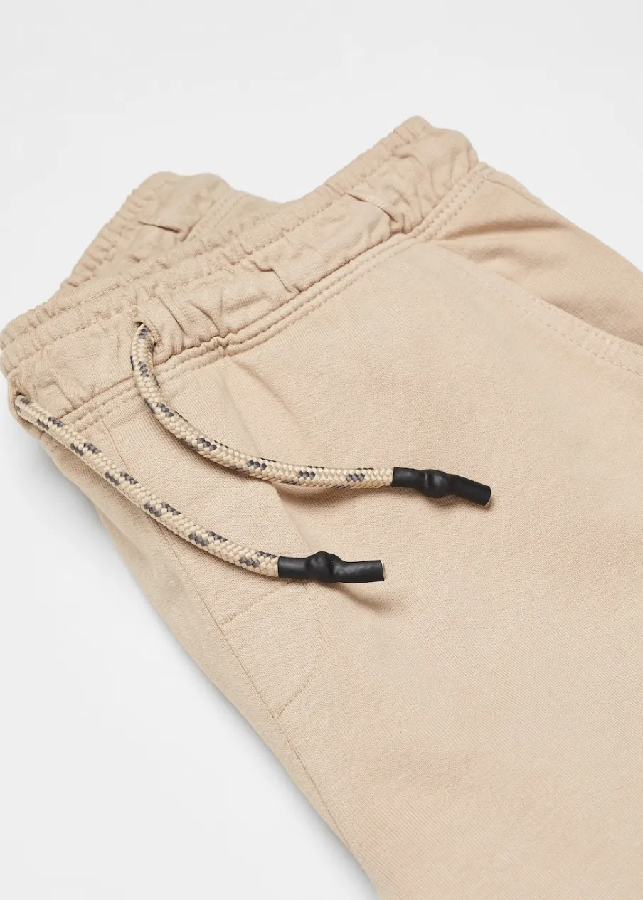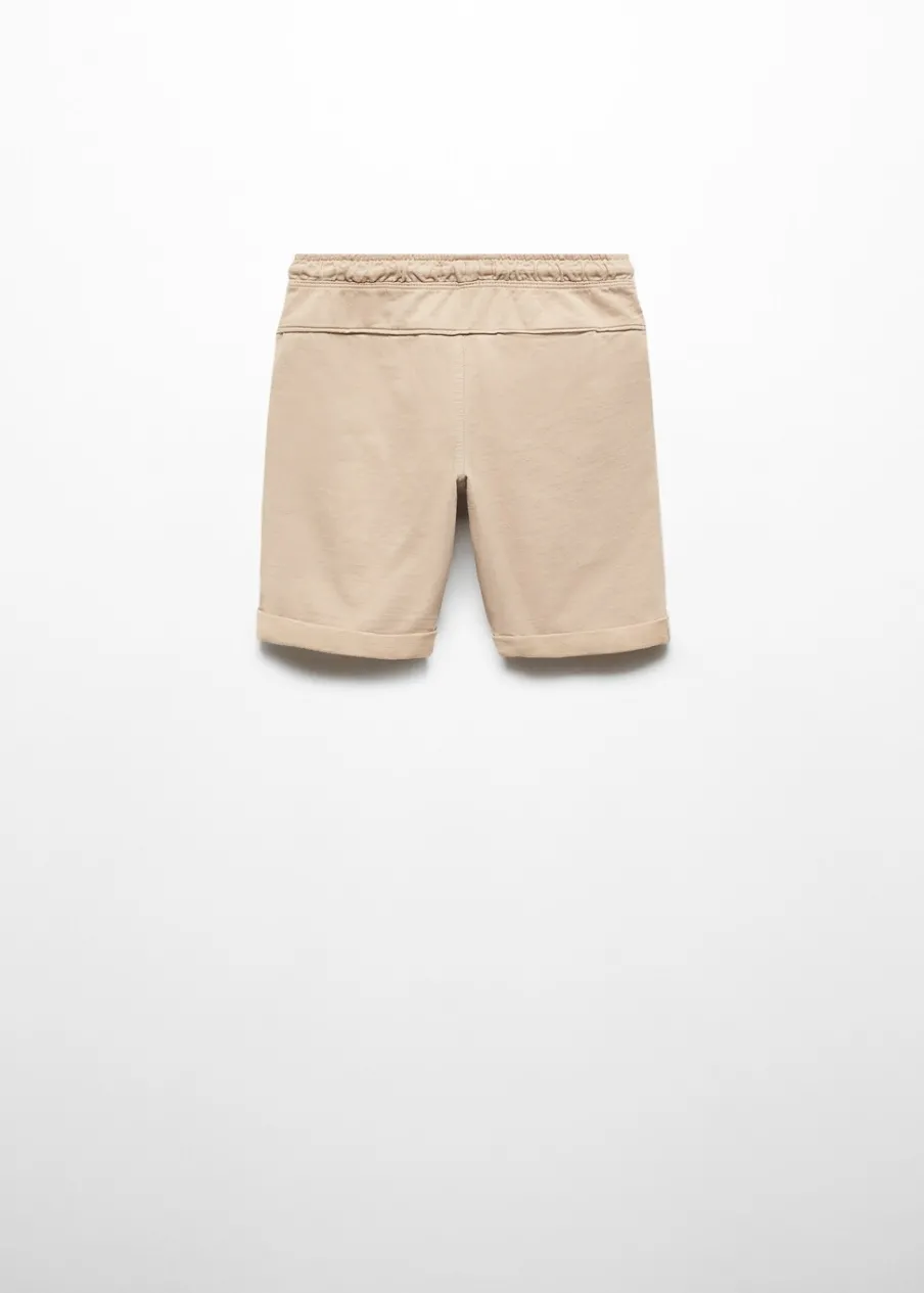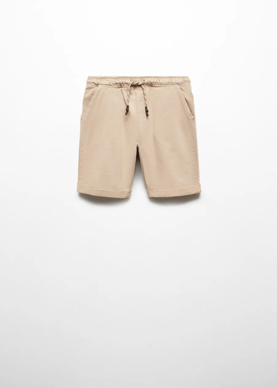 Tkanina z bawełną. Model prosty. Krótki krój. Elastyczny pas ze sznurkiem. Dwie kieszenie boczne. Obóz letni.
