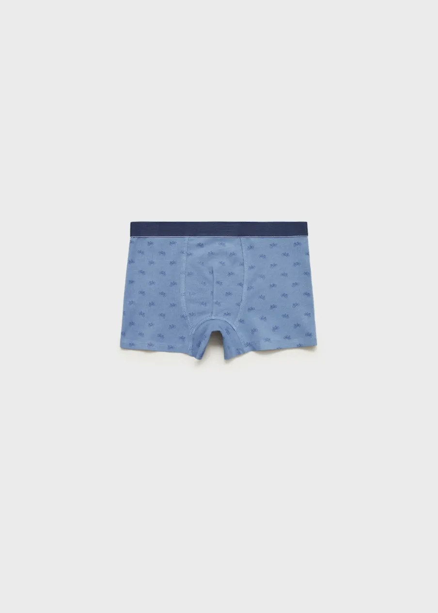 Zestaw 3 sztuk. Tkanina z bawełną. Model prosty. Krótki krój. Wzór skaters. Nadruk w motocykle. Elastyczny pas.