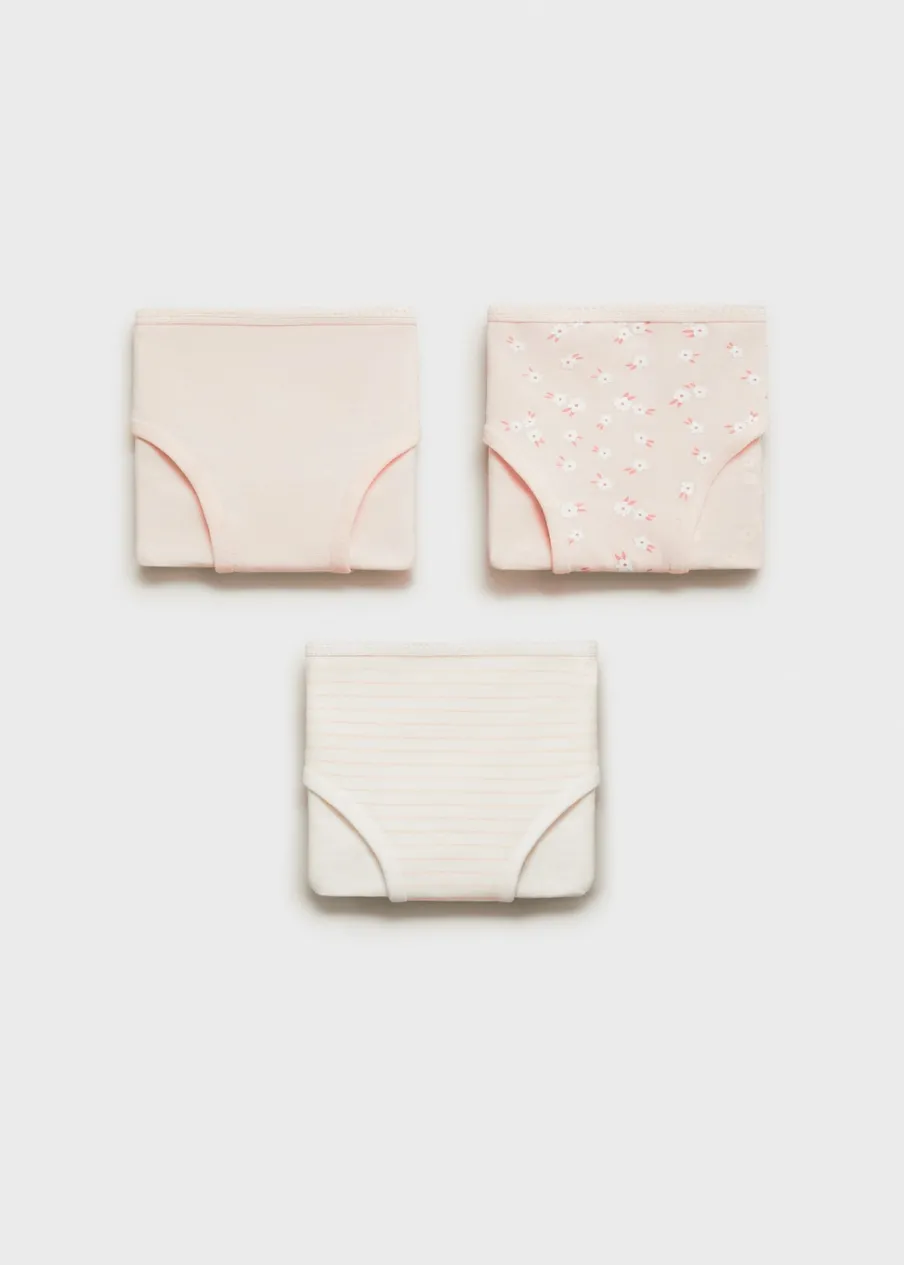 Zestaw 3 sztuk. Tkanina bawełniana. Model z serii basic. Kwiatowy wzór. Wzór w pasy. Klasyczne figi. Elastyczny pas.