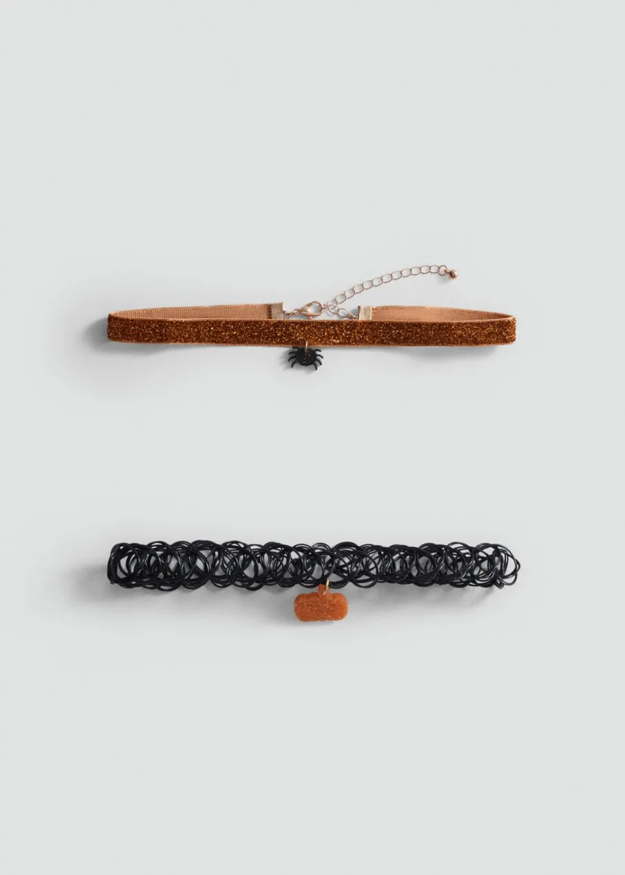 OpisZestaw 2 szt. Kolekcja Halloween. Motyw nietoperza. Zapięcie na łańcuszek i karabińczyk.