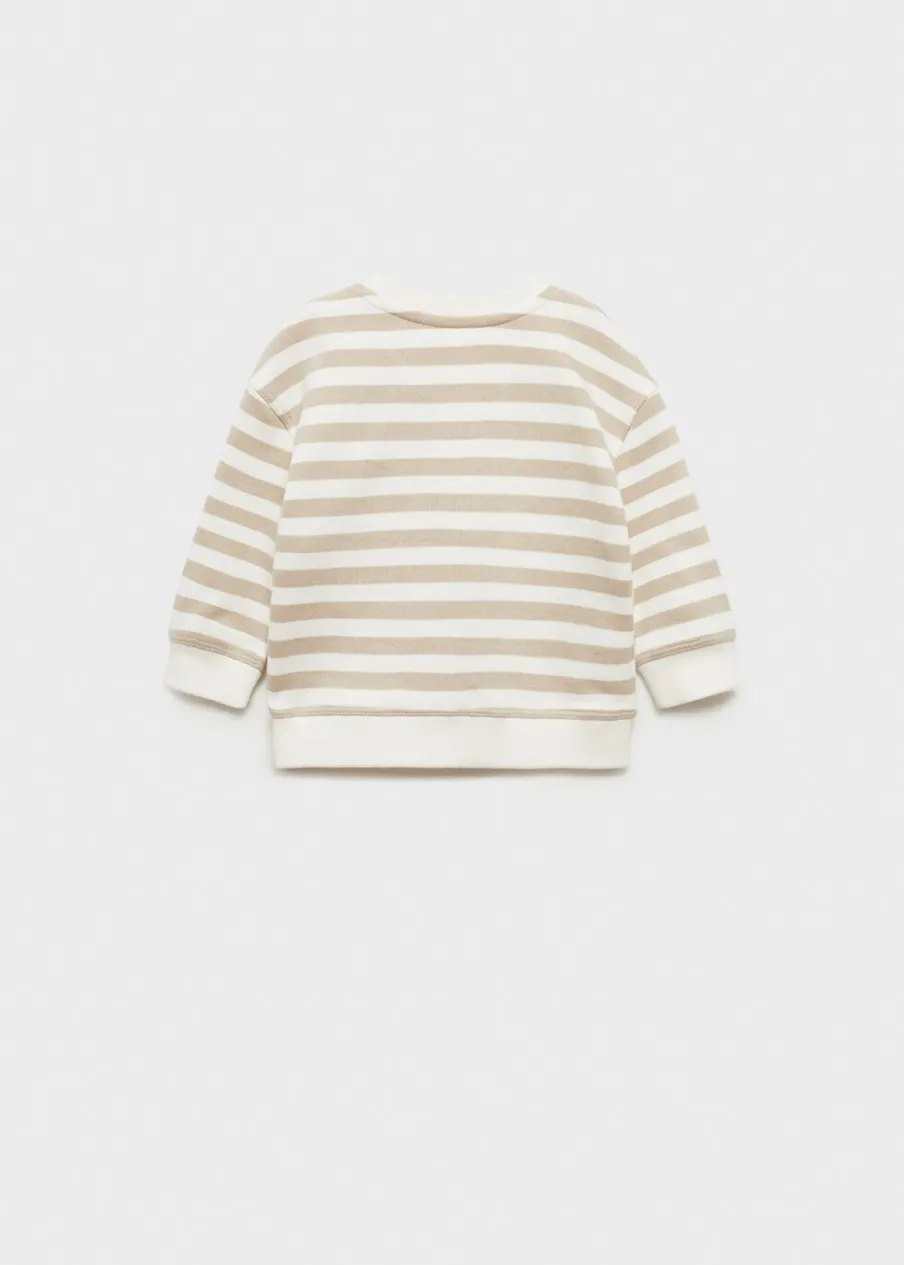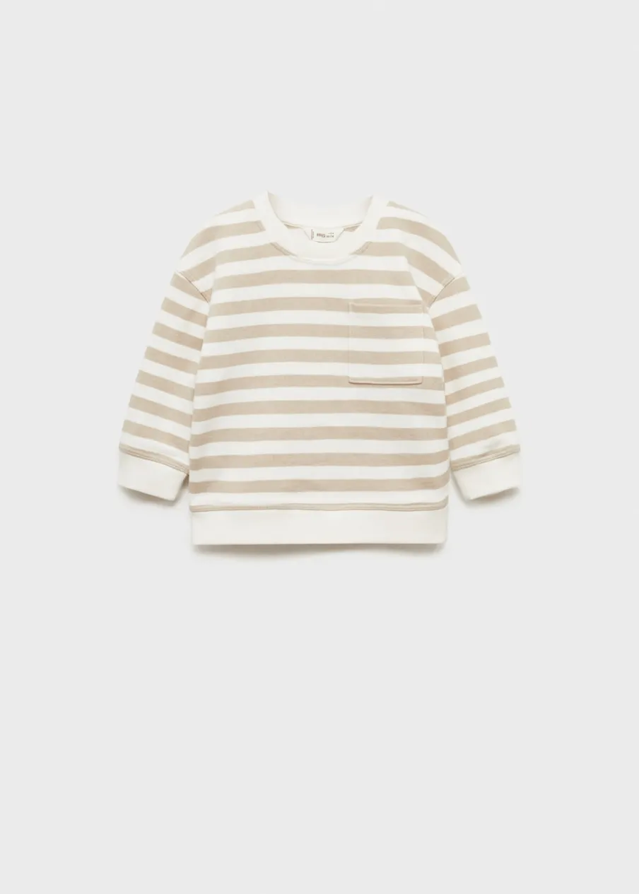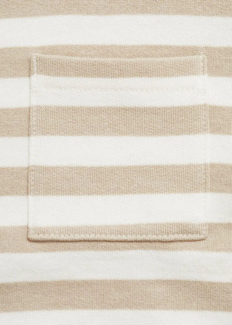 100% bomull. Model prosty. Wzór w pasy. Kieszeń nakładana. Okrągły dekolt. Długi rękaw.
