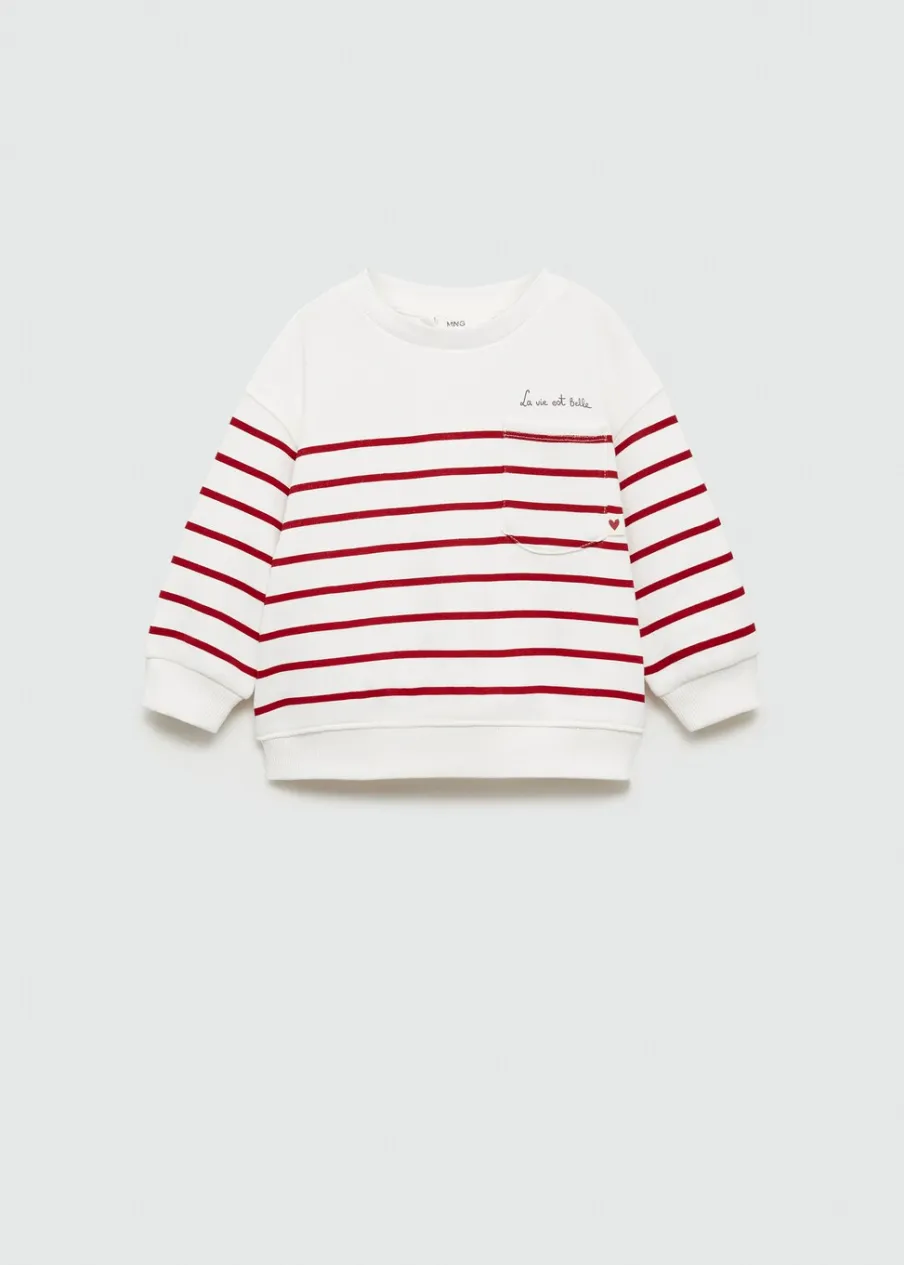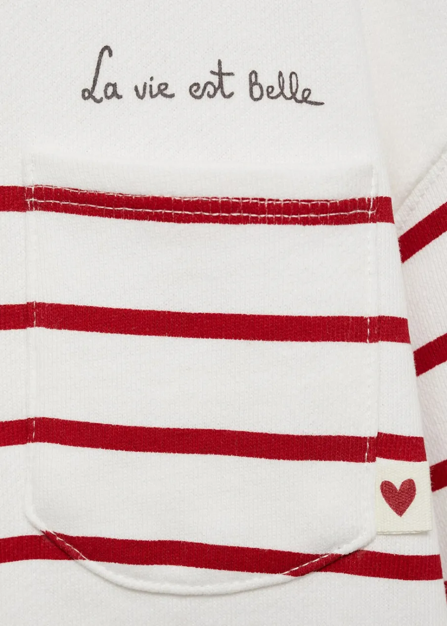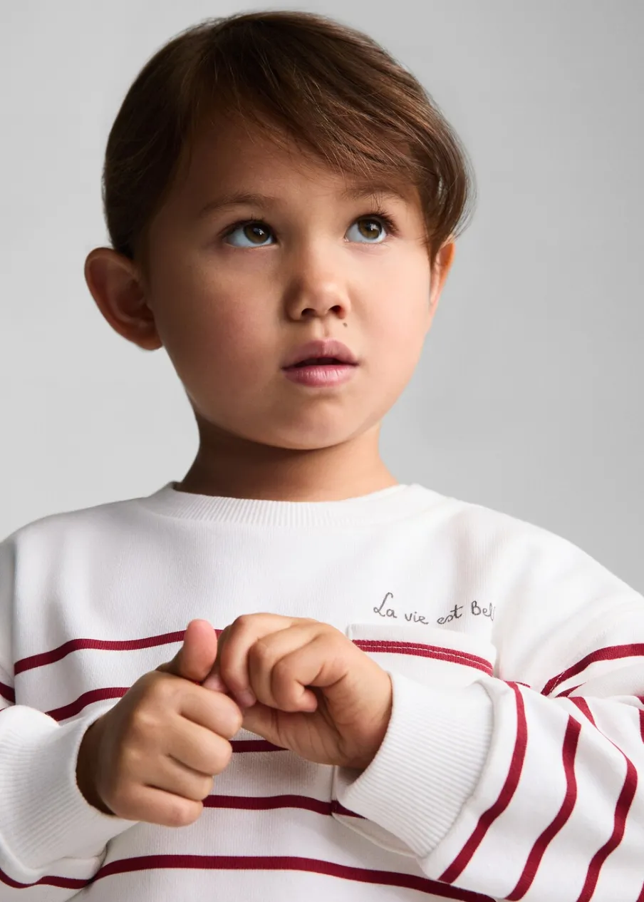 Kolekcja Powrót do szkoły. 100% bomull. Model prosty. Wzór w litery. Okrągły dekolt. Długi rękaw. Bez zapięcia. Wzór w paski. Nadruk.
