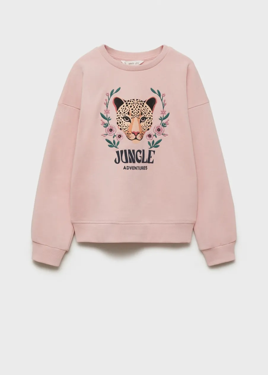 Bawełna 100%. Okrągły dekolt. Długi rękaw. Nadruk pantery. Haftowane detale.